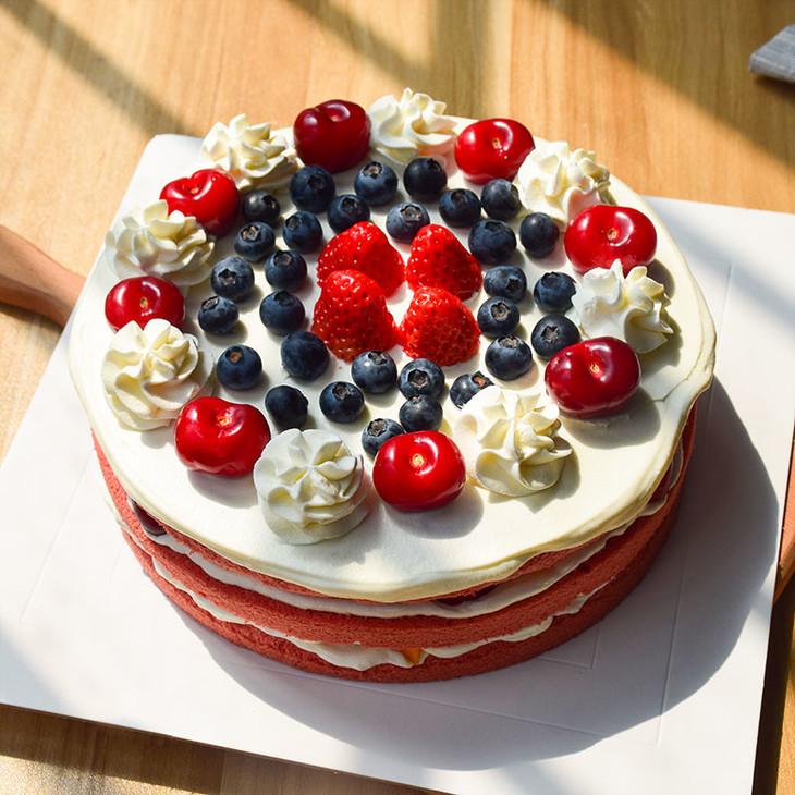 主要原料有:总统淡奶油(法国)、小麦粉(荷兰)、 纯牛奶(荷兰) 、幼砂糖(韩国)、车厘子\樱桃、芒果(台湾)、草莓、蓝莓(比利时)、红曲粉