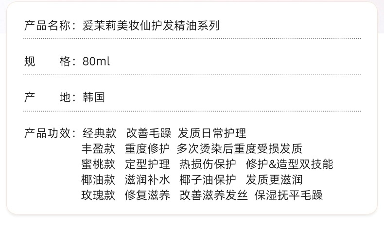 【保税直邮 重庆海关】爱茉莉护发精油美妆仙修护烫染干枯护发发膜毛躁柔顺卷发发油