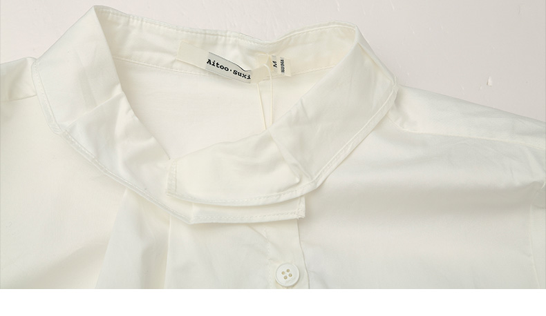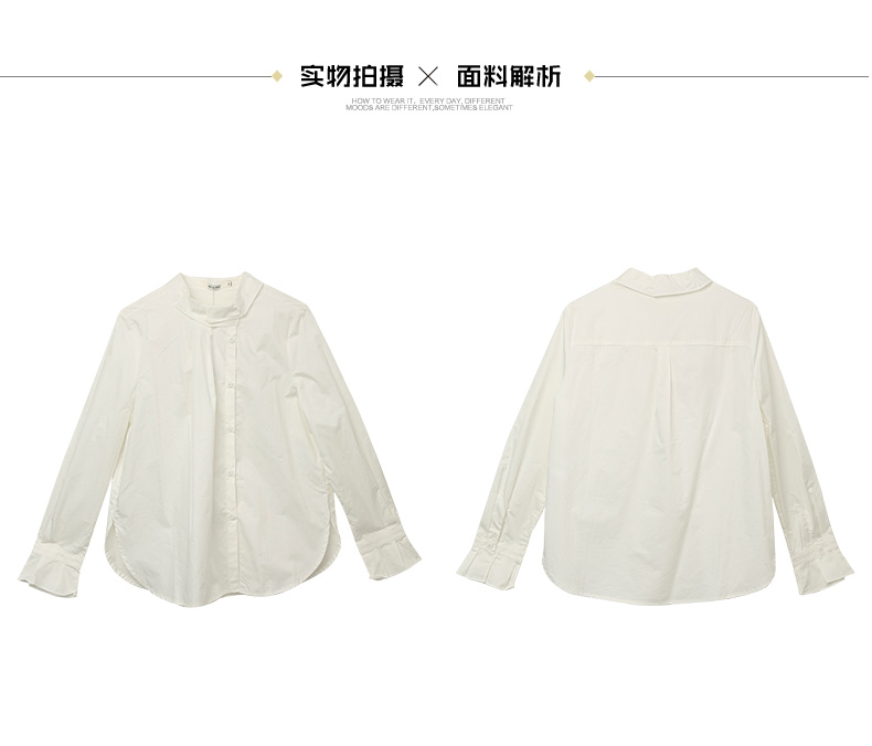 米白色立领单排扣衬衫 复古风喇叭袖宽松显瘦上衣 春秋季文艺范百搭女式衬衣