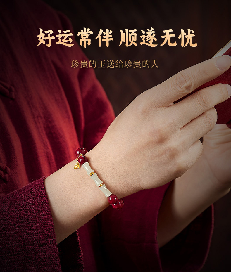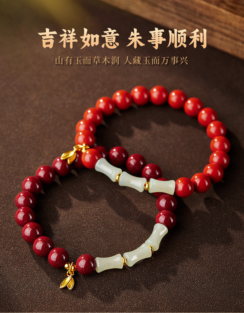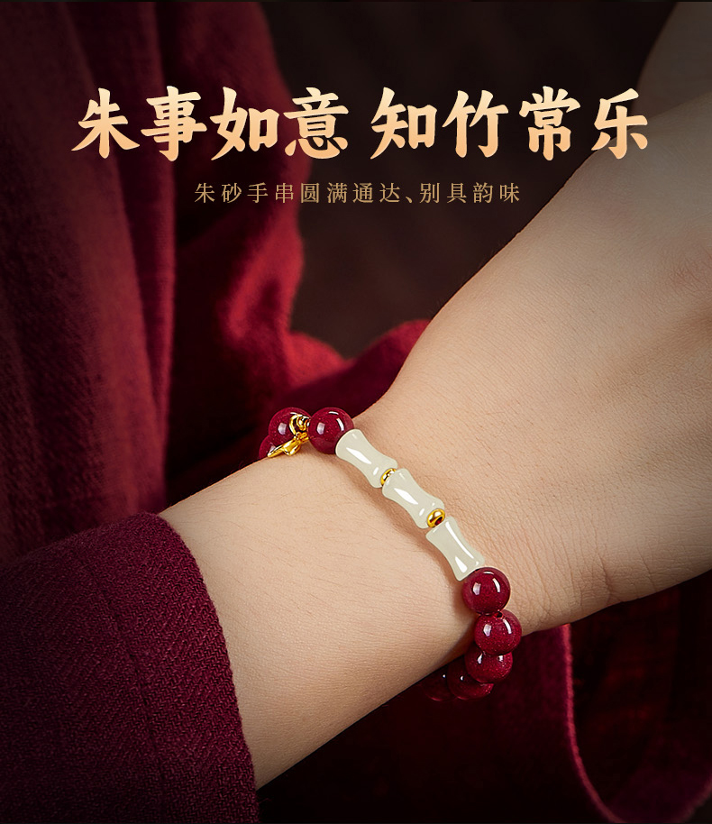 颗颗饱满【和田玉竹节朱砂手串】高含量紫金砂帝王砂 手感细腻光滑 寓意美好 时尚百搭