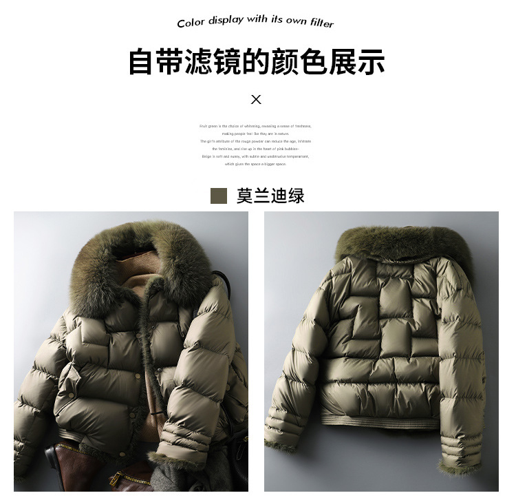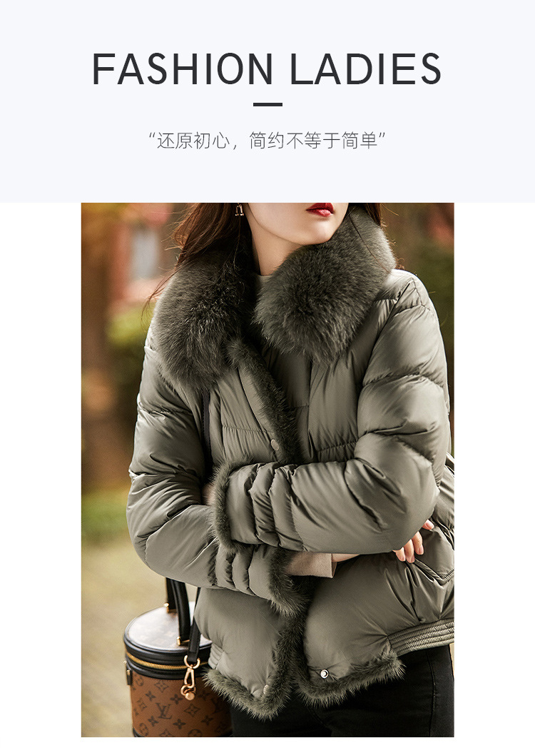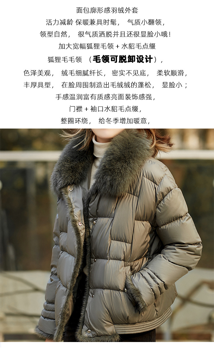 【高货ay】全新升级【铂金会员882/天猫1199/差价317】(34821) 洛诗琳秋冬高定水貂毛边95白鹅绒短款面包羽绒服狐狸毛领