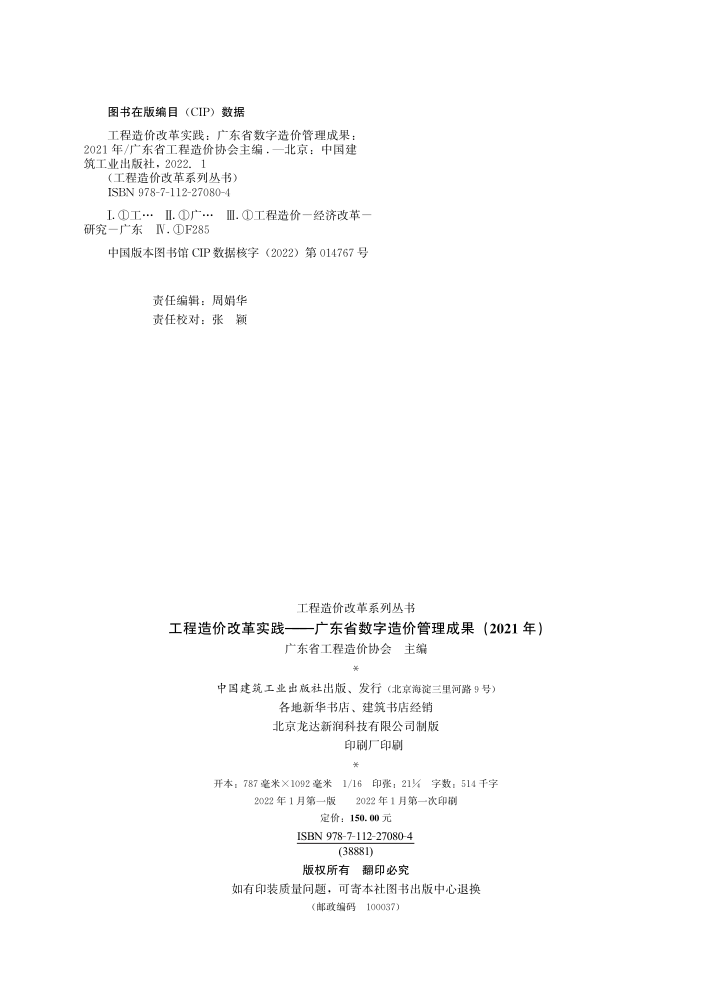 书名:工程造价改革实践—广东省数字造价管理成果(2021年)