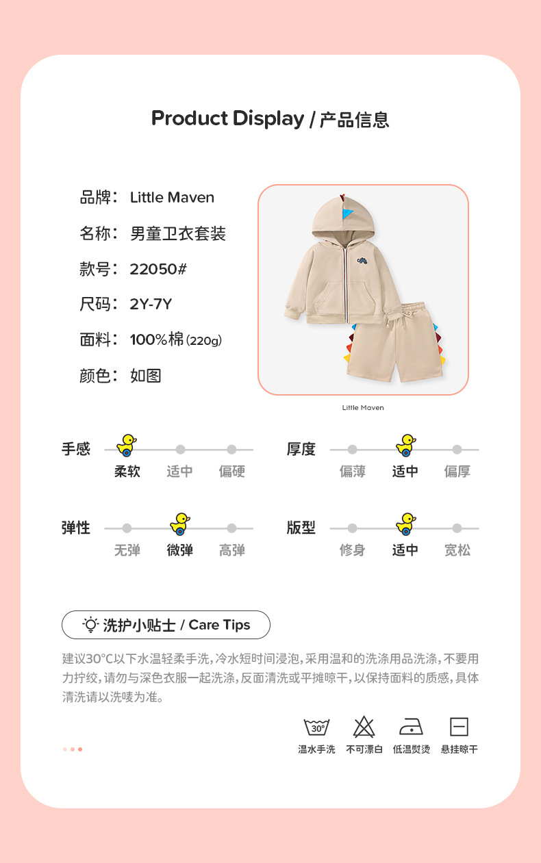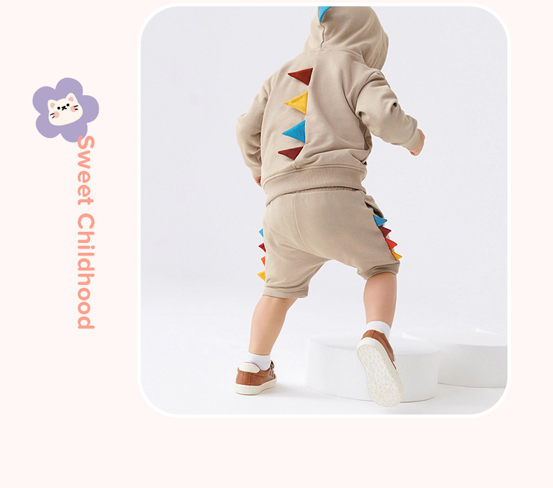 【设计精致,确保舒适透气!】男童卫衣套装秋季长袖连帽套头儿童套装纯棉两件套连帽设计为儿童提供额外的保暖和风格感