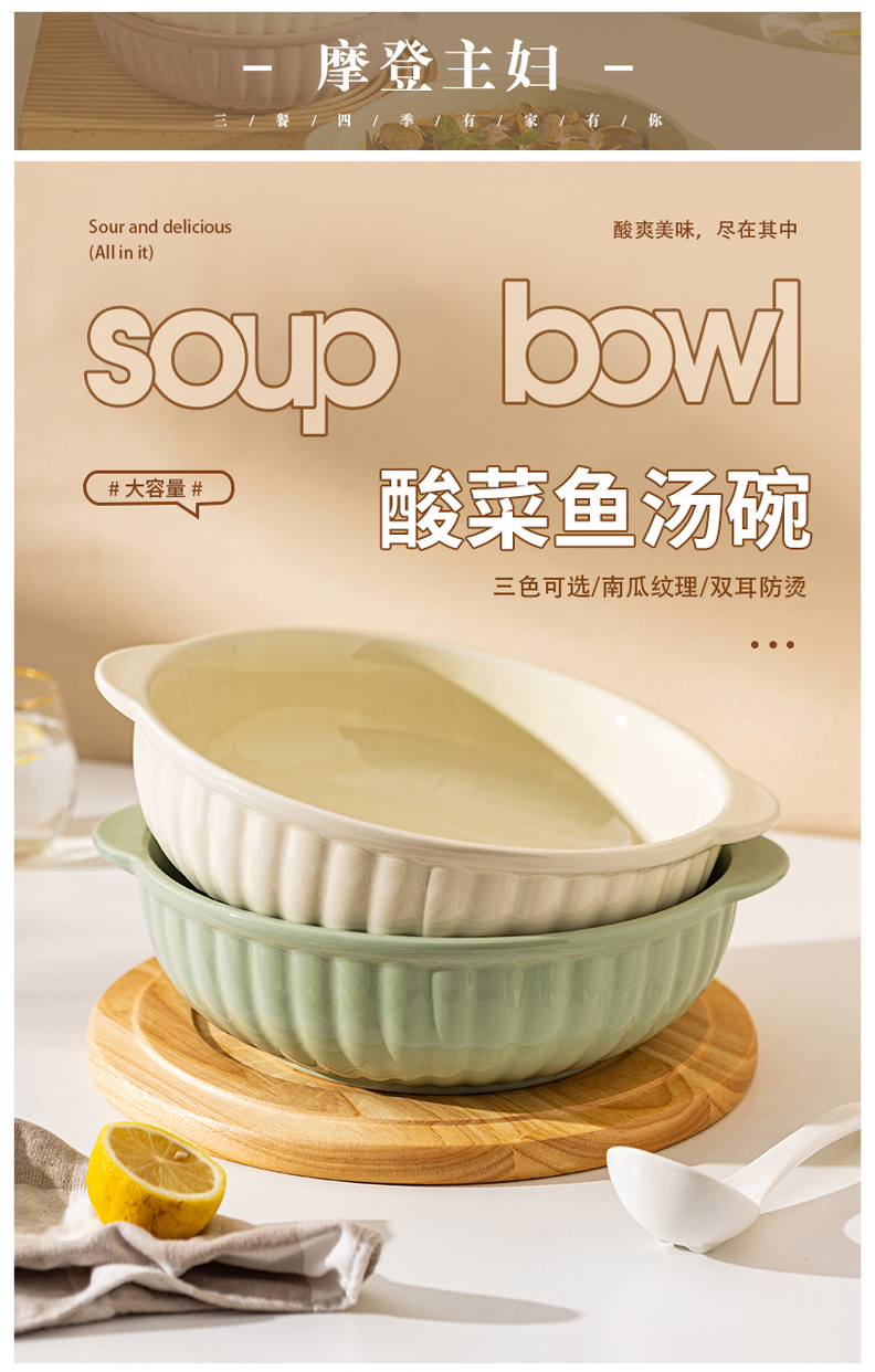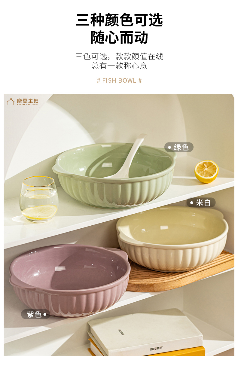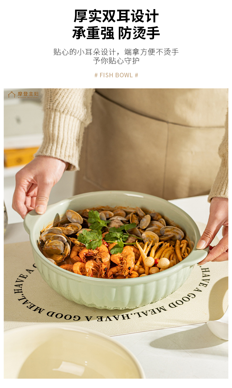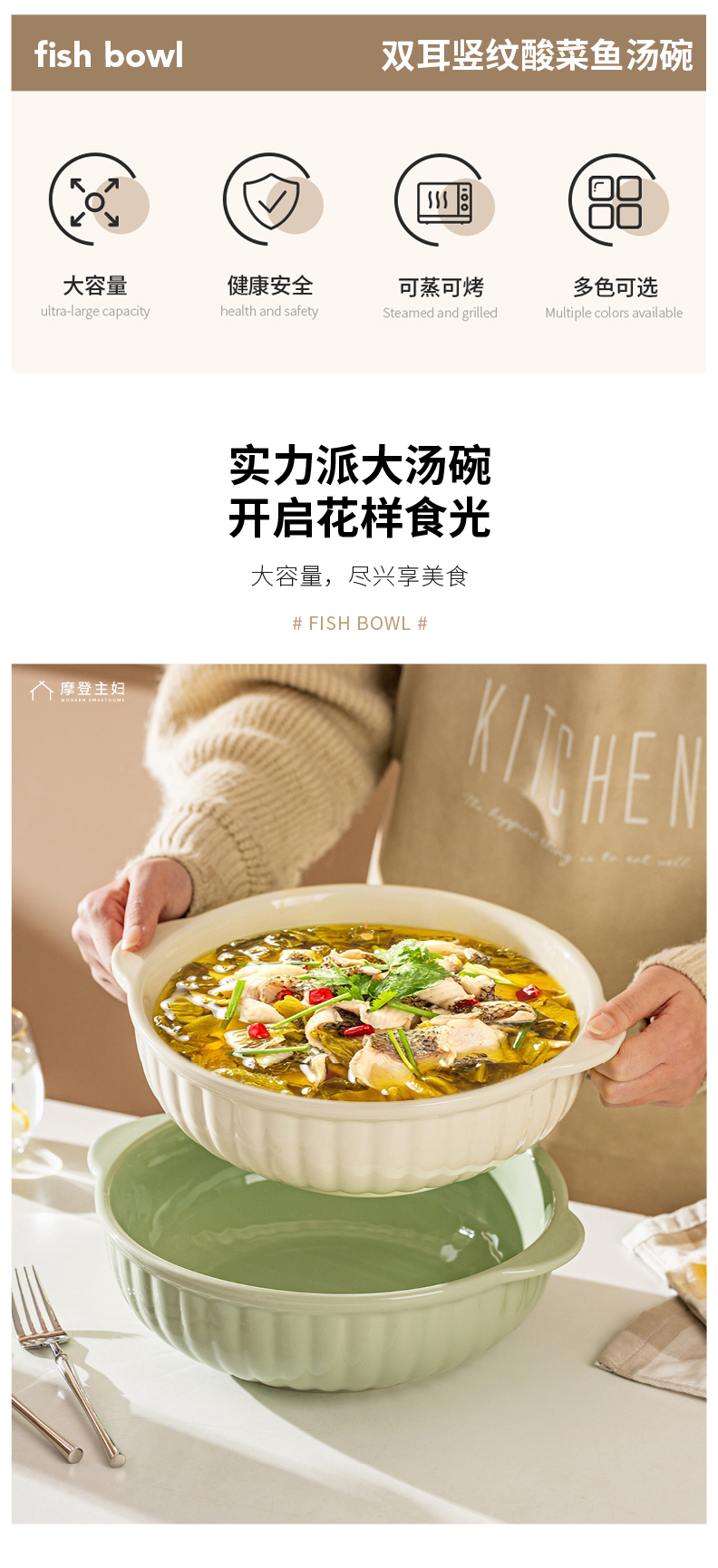 摩登主妇酸菜鱼大盆碗家用双耳汤碗12寸陶瓷大号汤盆水煮鱼专用碗