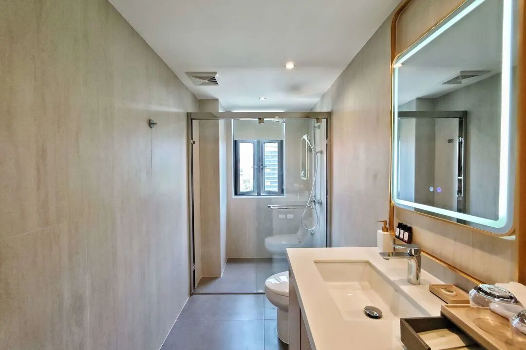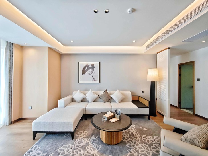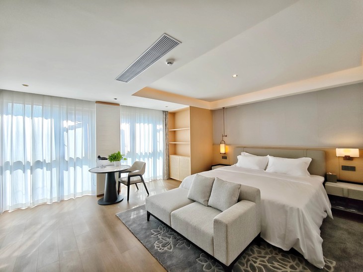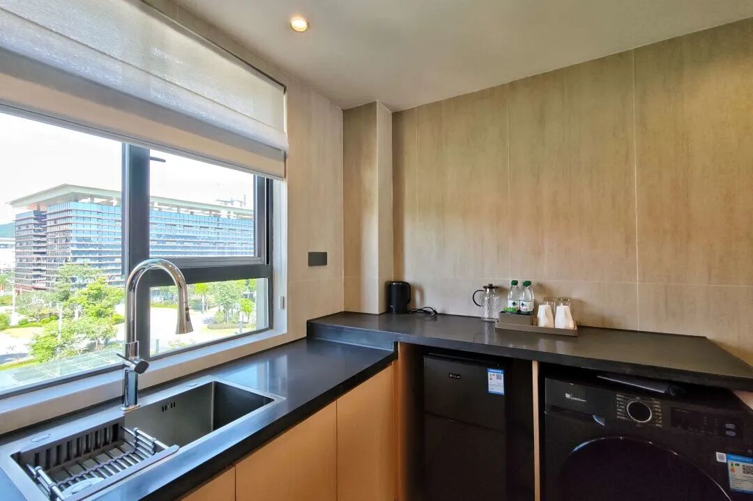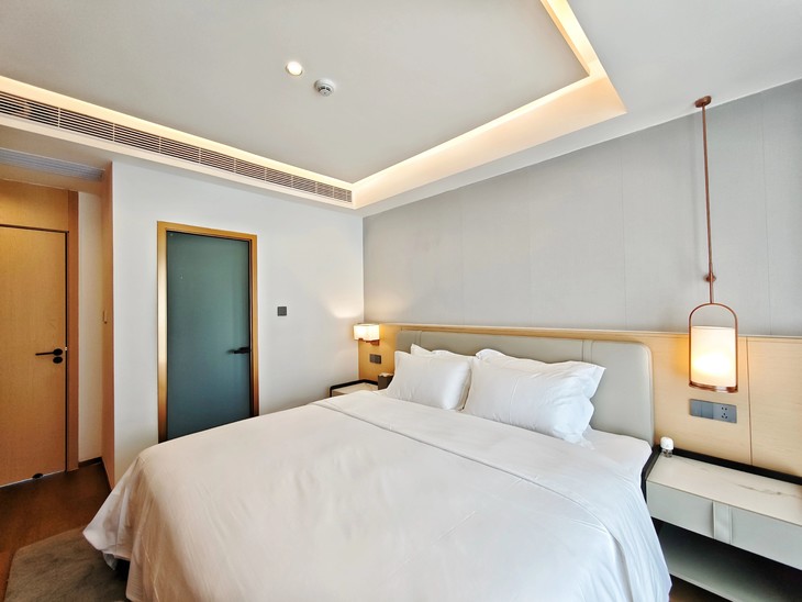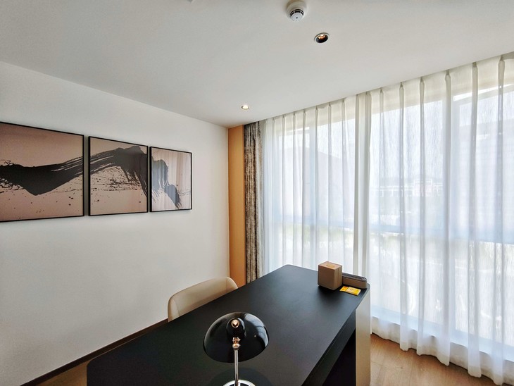 房间内的装饰风格简洁大方,使用了中性色调,营造出温馨的氛围~此外,酒店还有餐区、厨房和会议室等。