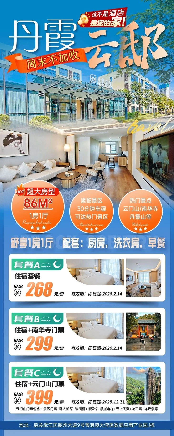 周末不加收【丹霞云邸酒店】超大房型,268元享一房一厅舒享套房,含双人早餐~轻奢享受,5分钟抵高铁站,叹一小时经济生活圈~(有效期:即日起-2026年2月14日)