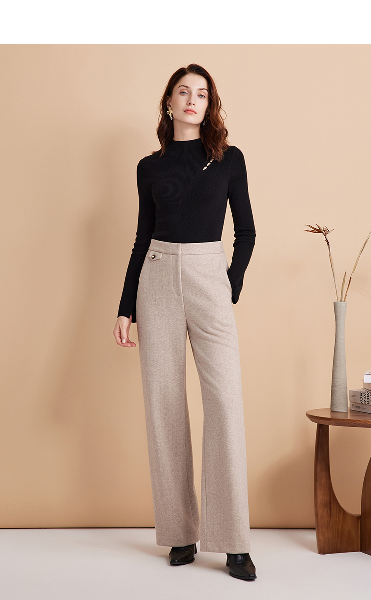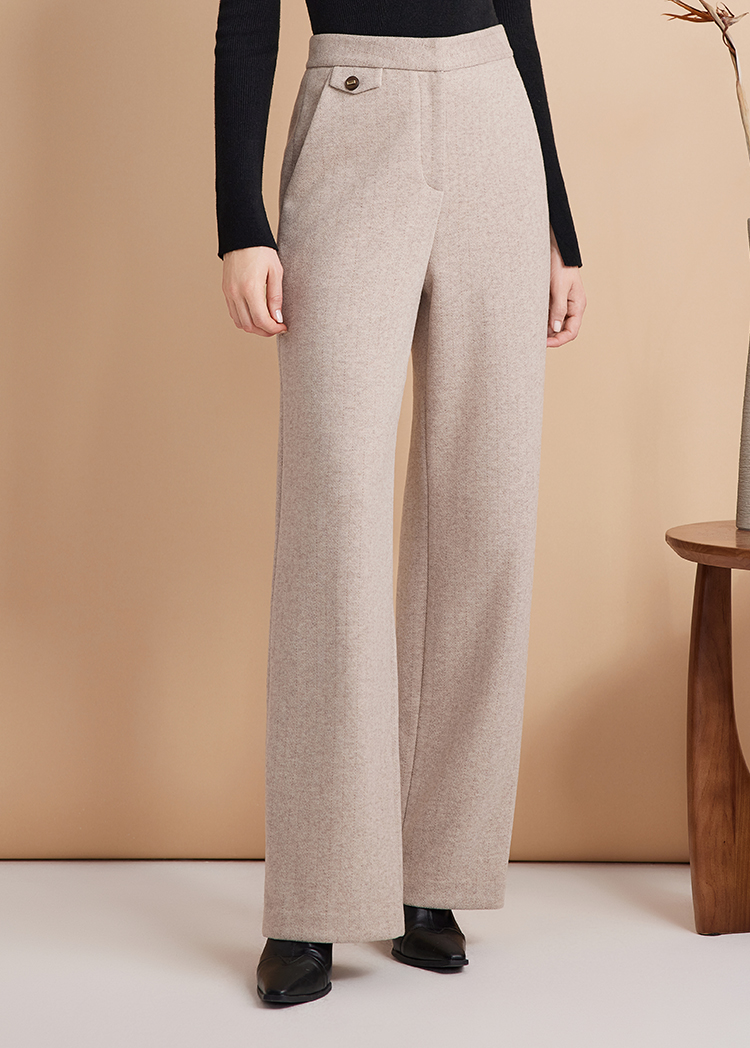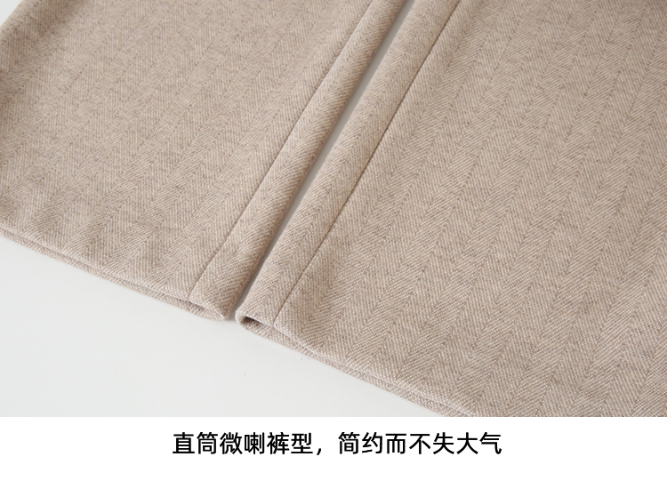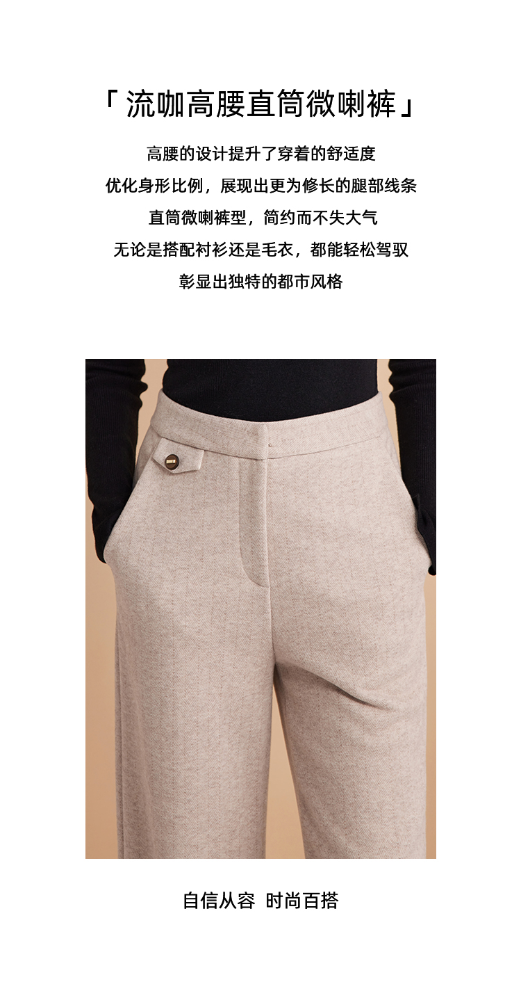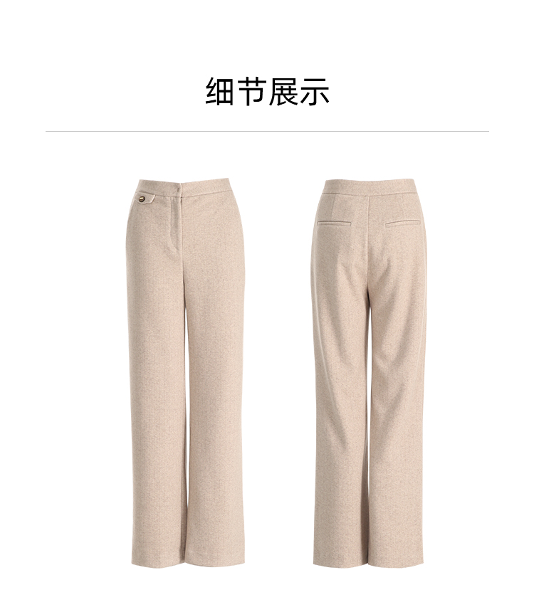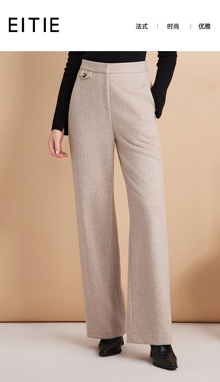 EITIE爱特爱时尚高腰显瘦百搭毛呢直筒燕麦色休闲裤冬季新款D2405411
