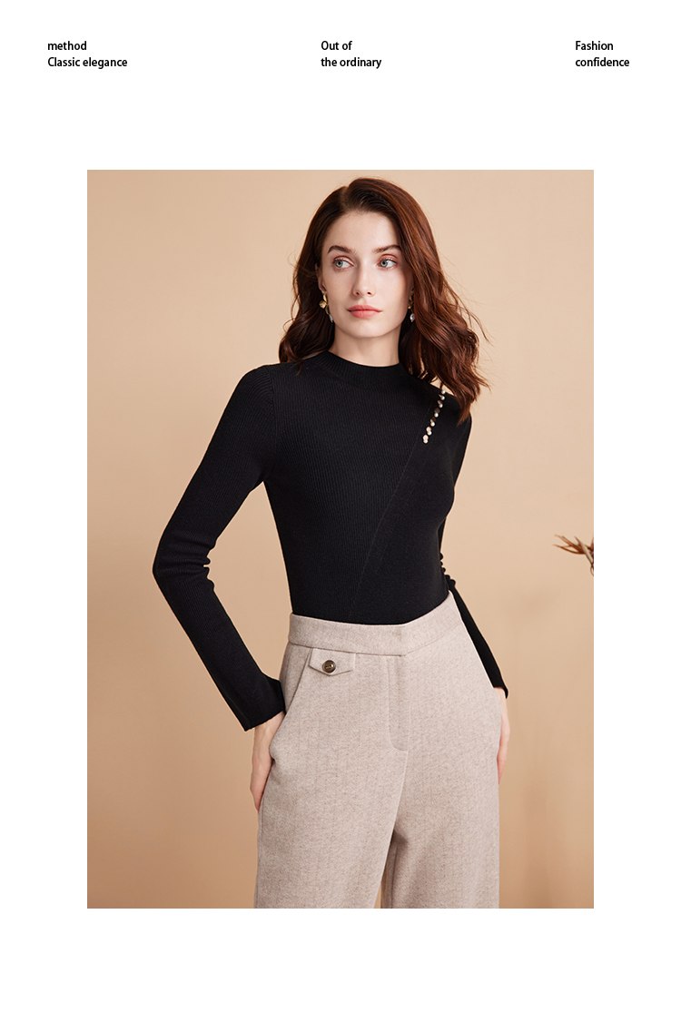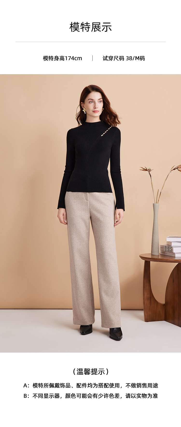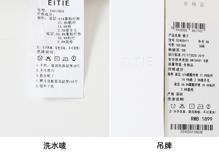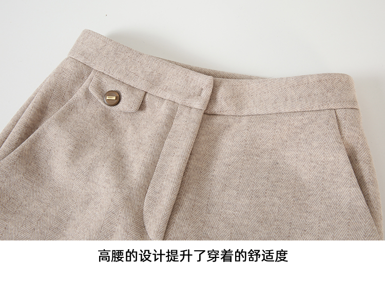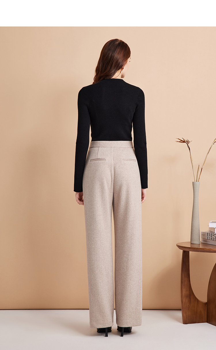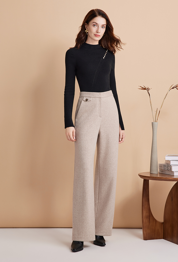 EITIE爱特爱时尚高腰显瘦百搭毛呢直筒燕麦色休闲裤冬季新款D2405411