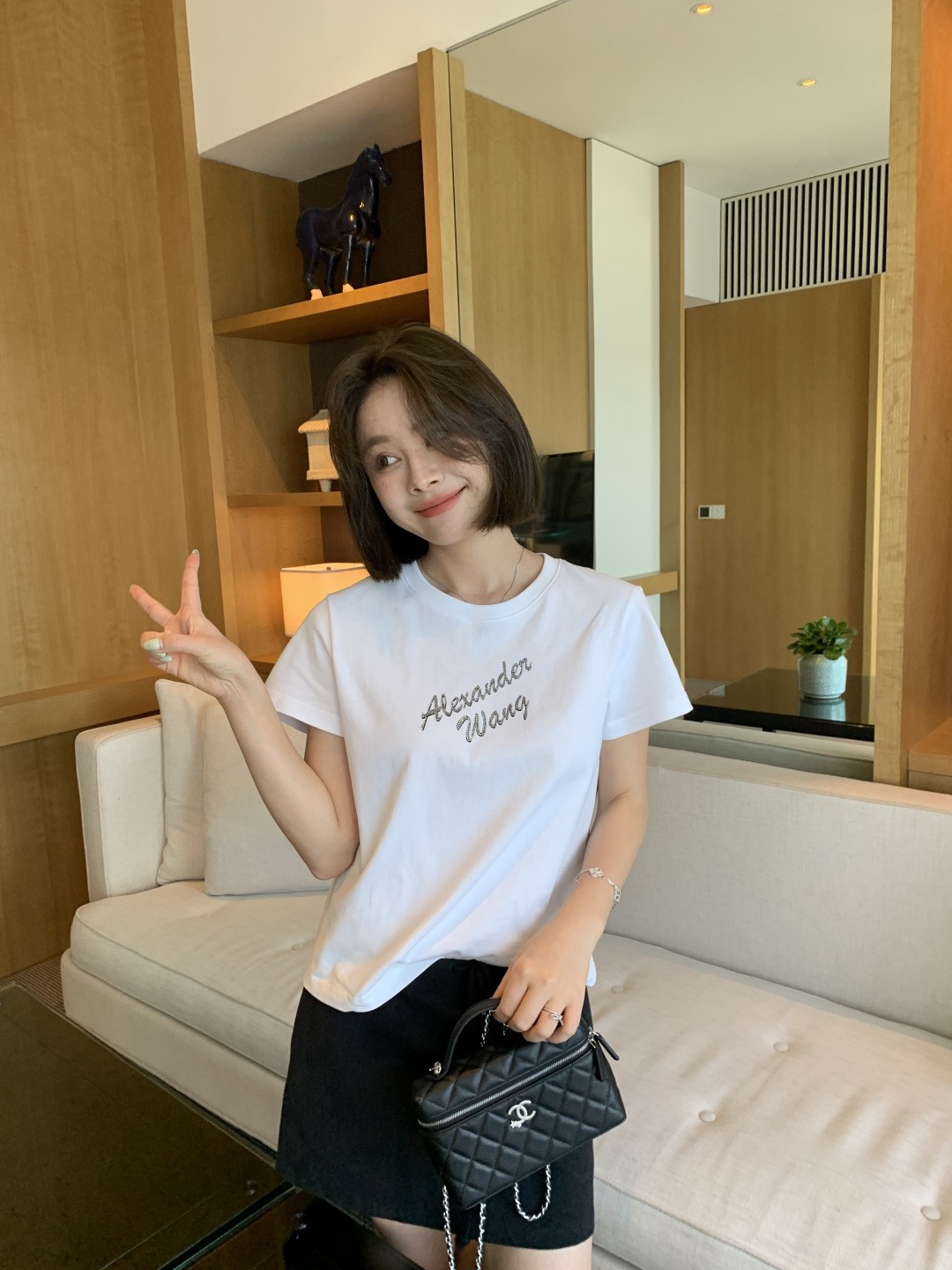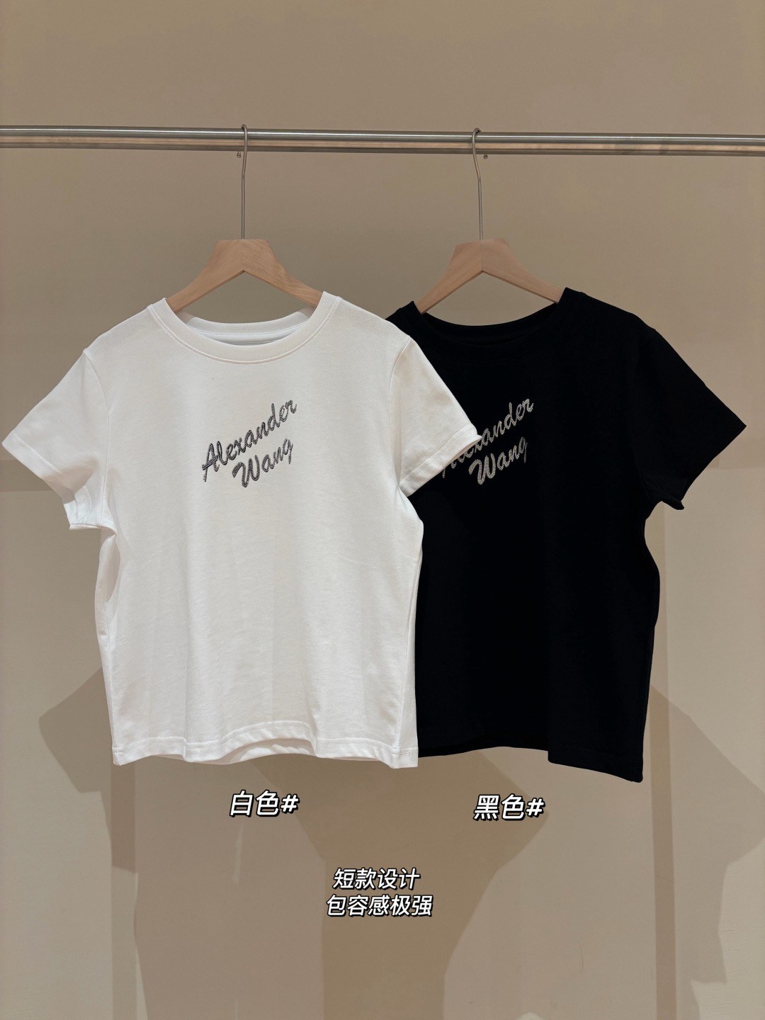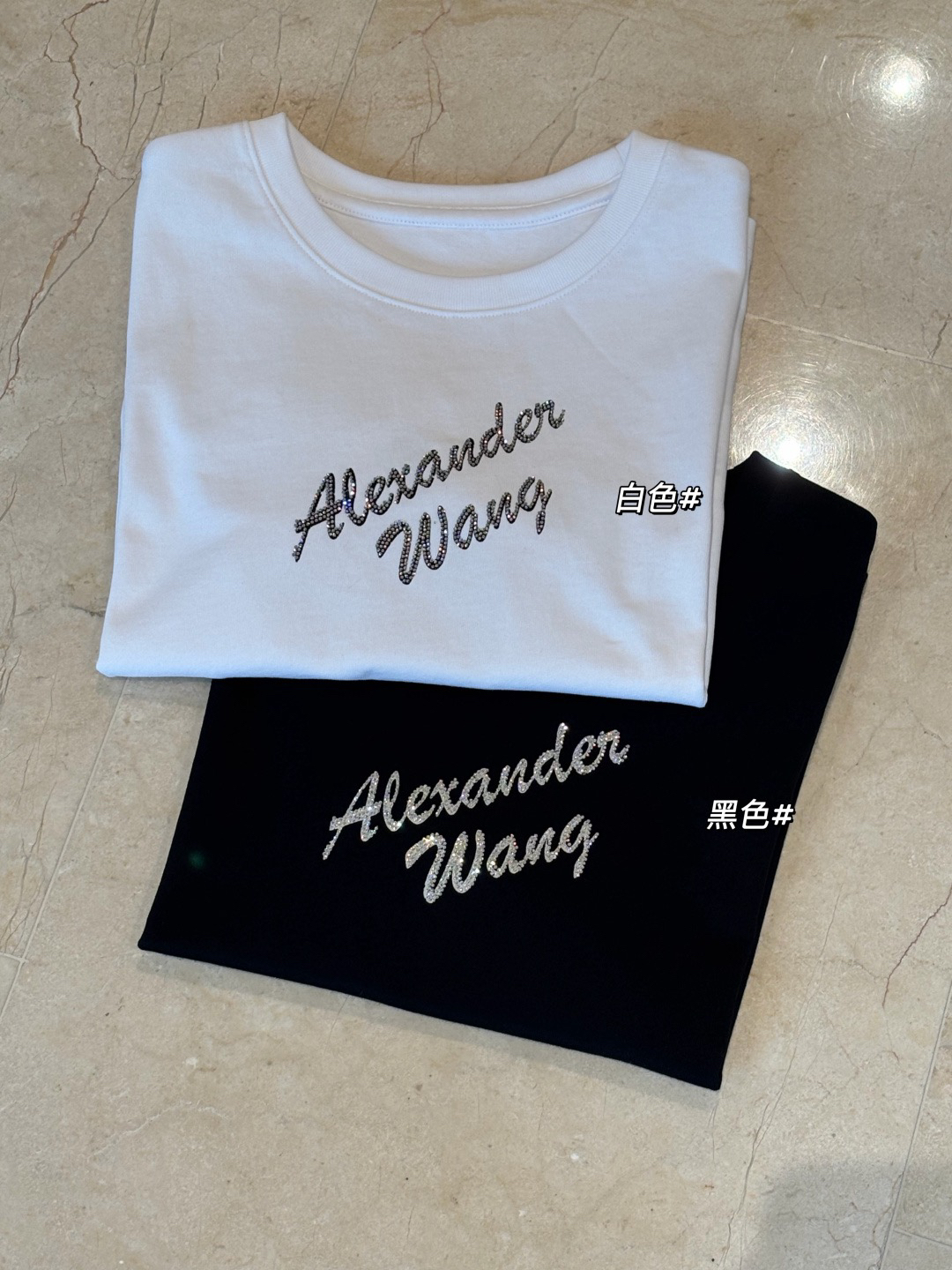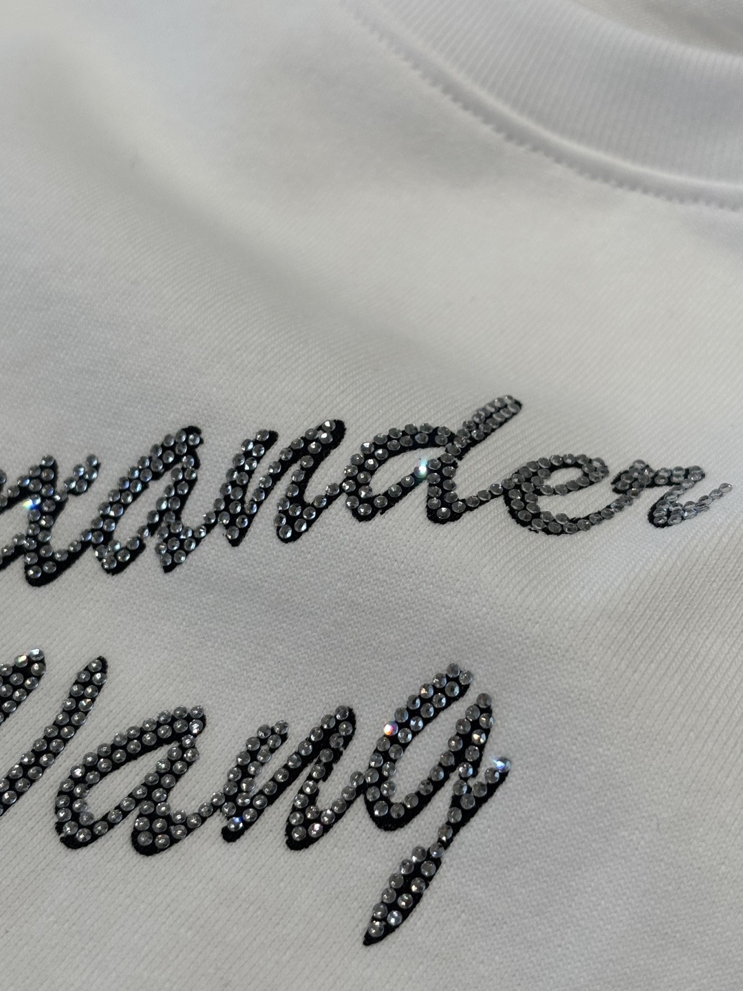 纯原料Alexander Wan*g 预售大王女士Shrunken 烫钻logo正肩tee来咯!