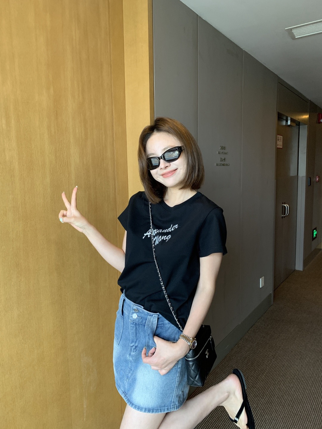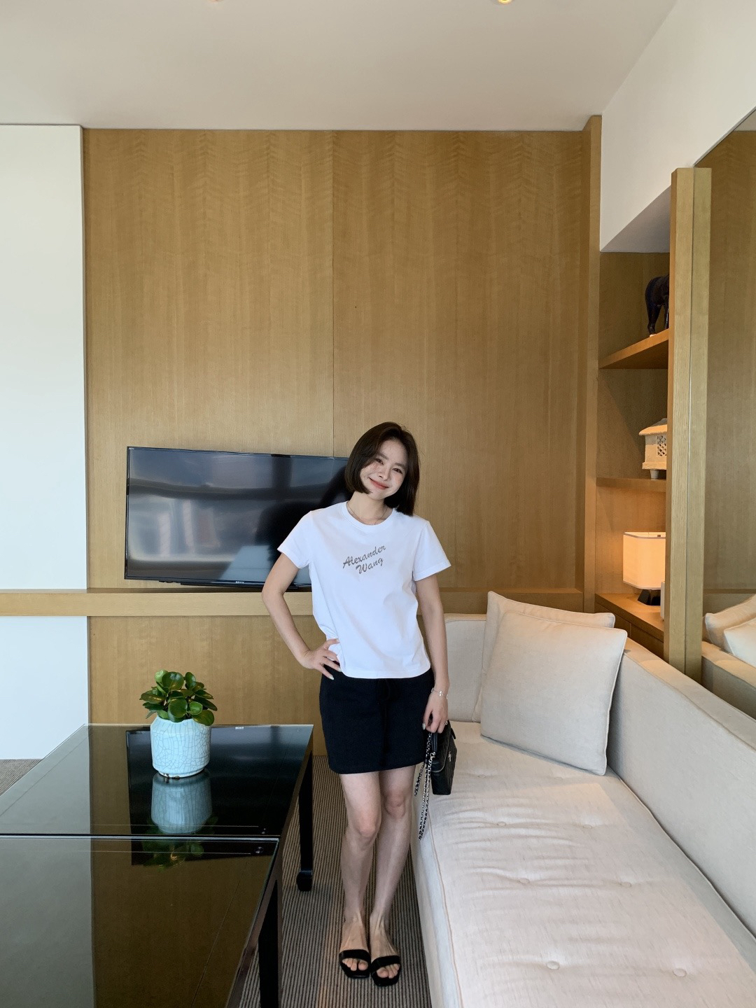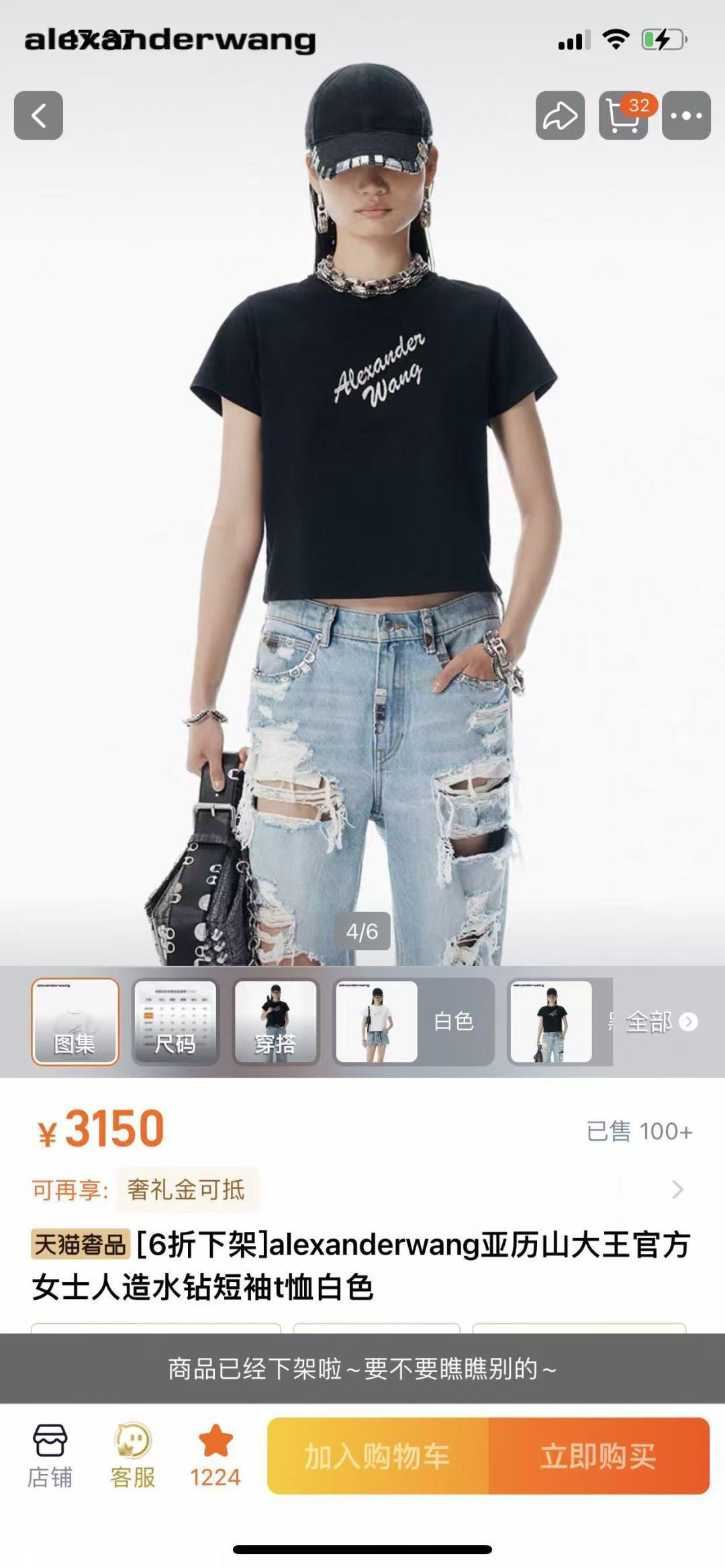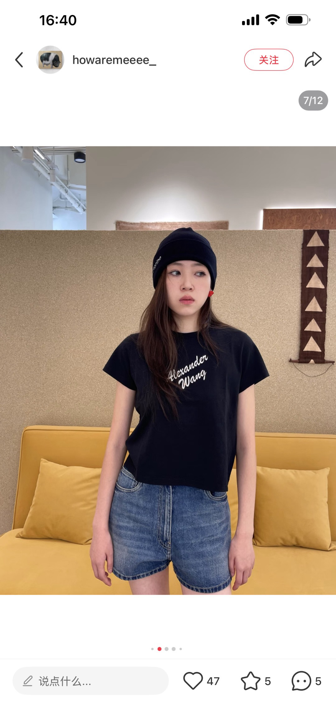 纯原料Alexander Wan*g 预售大王女士Shrunken 烫钻logo正肩tee来咯!