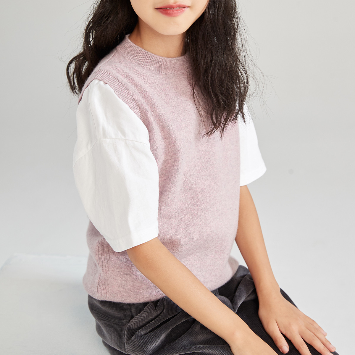 PALUOPO/PL山羊绒女童纯色羊绒衫100%山羊绒帕罗
