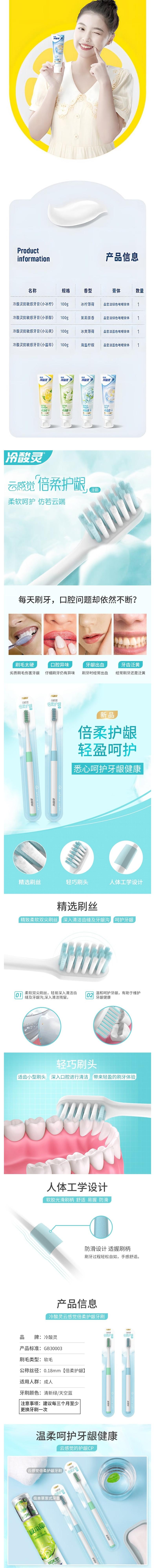 冷酸灵 牙膏(小冰柠100g+小盐珍100g)+云感觉牙刷1支 LSR-BY-1YS