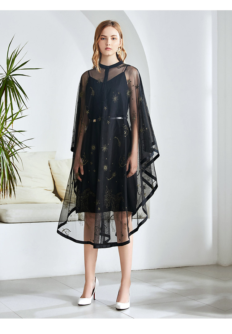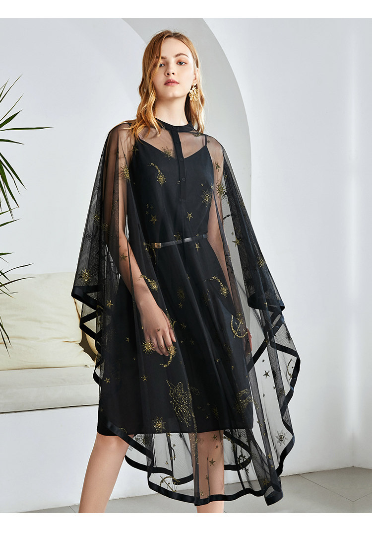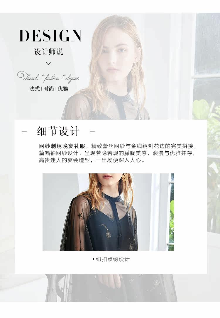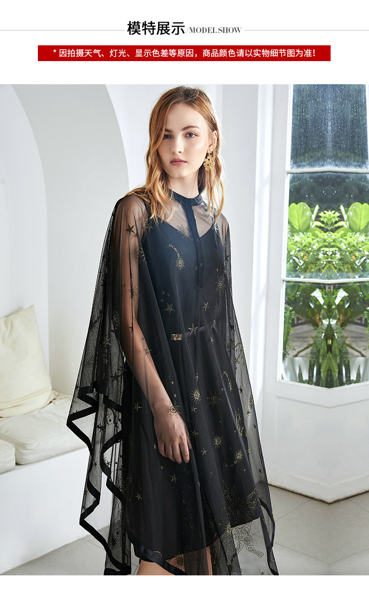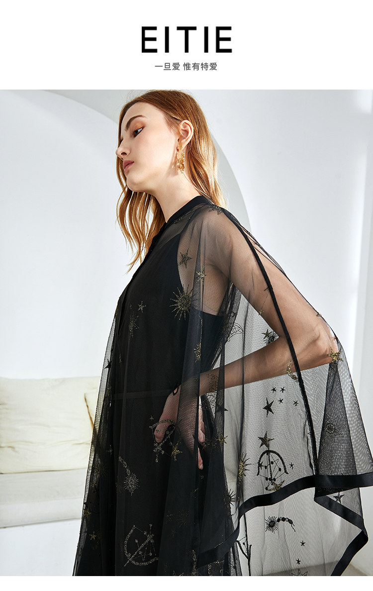 EITIE爱特爱秋季新款时尚吊带网纱披风收腰星空小黑裙礼服裙6077710