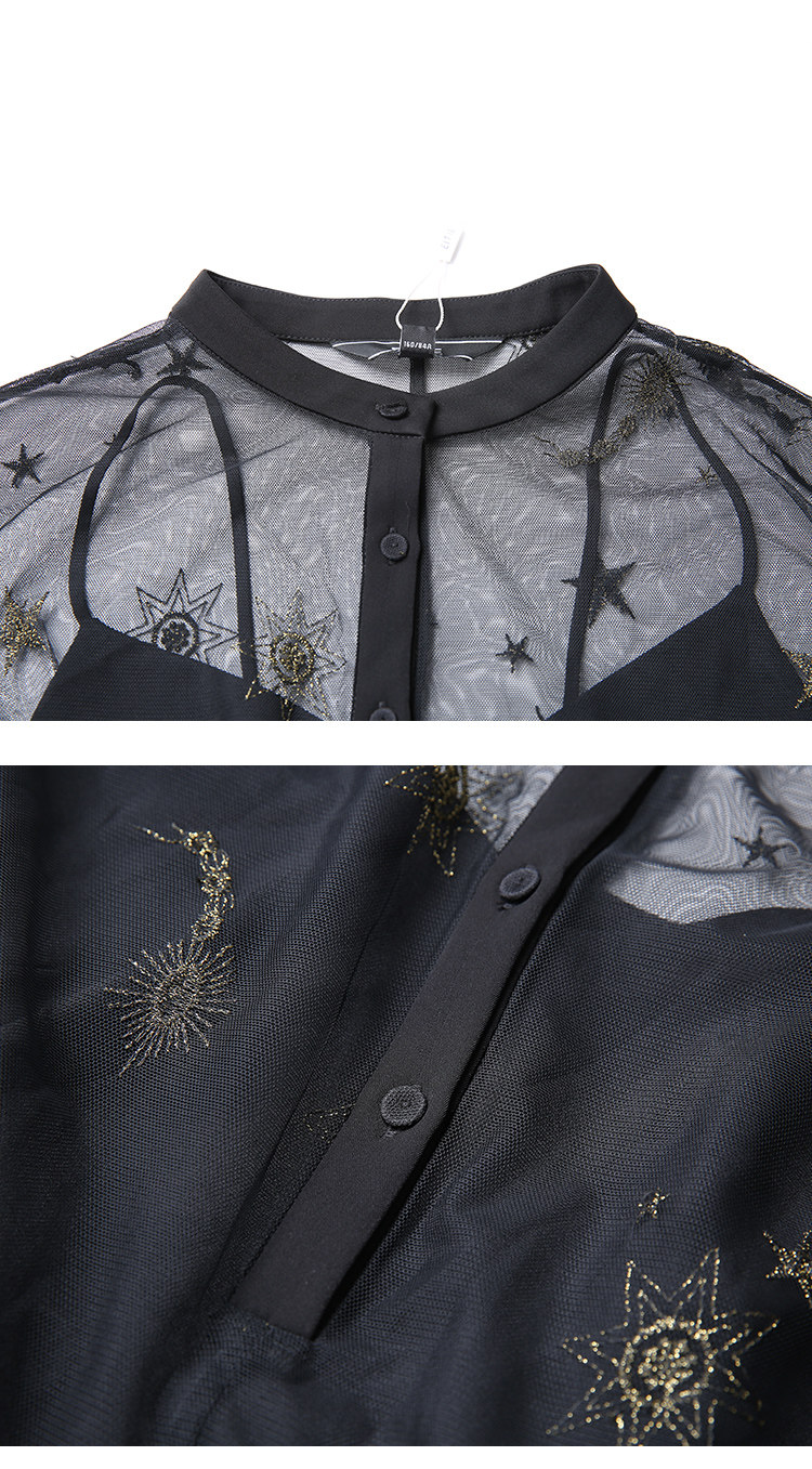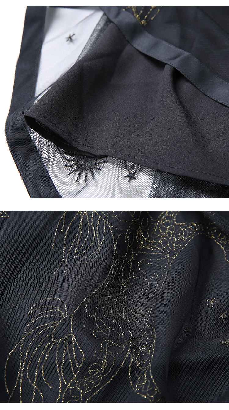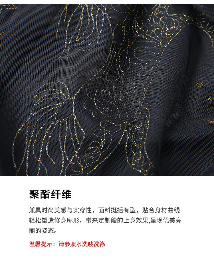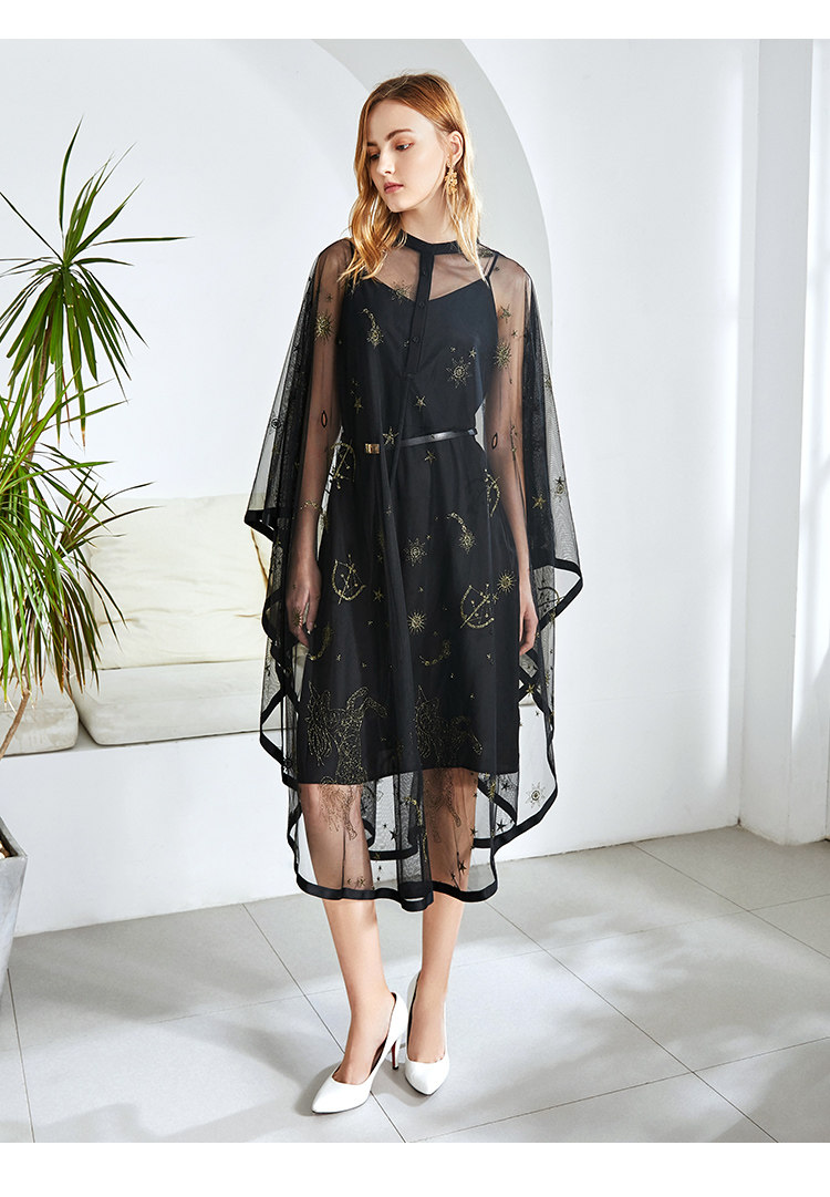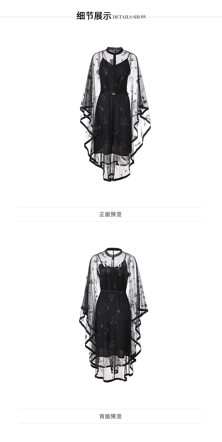 EITIE爱特爱秋季新款时尚吊带网纱披风收腰星空小黑裙礼服裙6077710