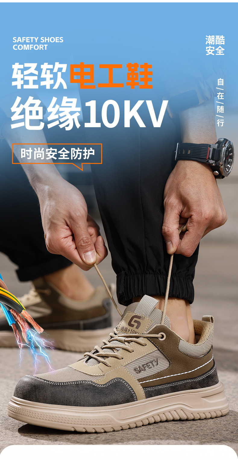 2025绝缘10KV劳保鞋男防砸防刺塑包头橡塑底四季款轻便安全鞋