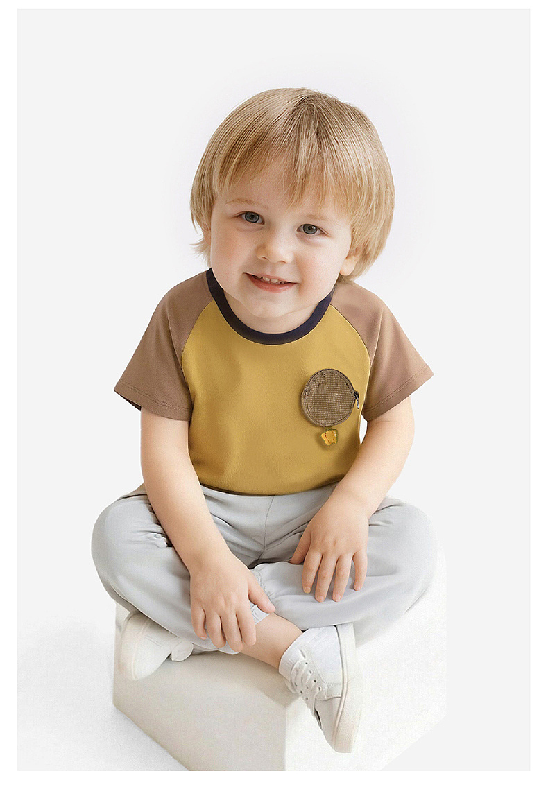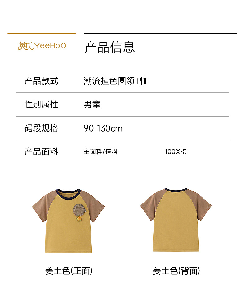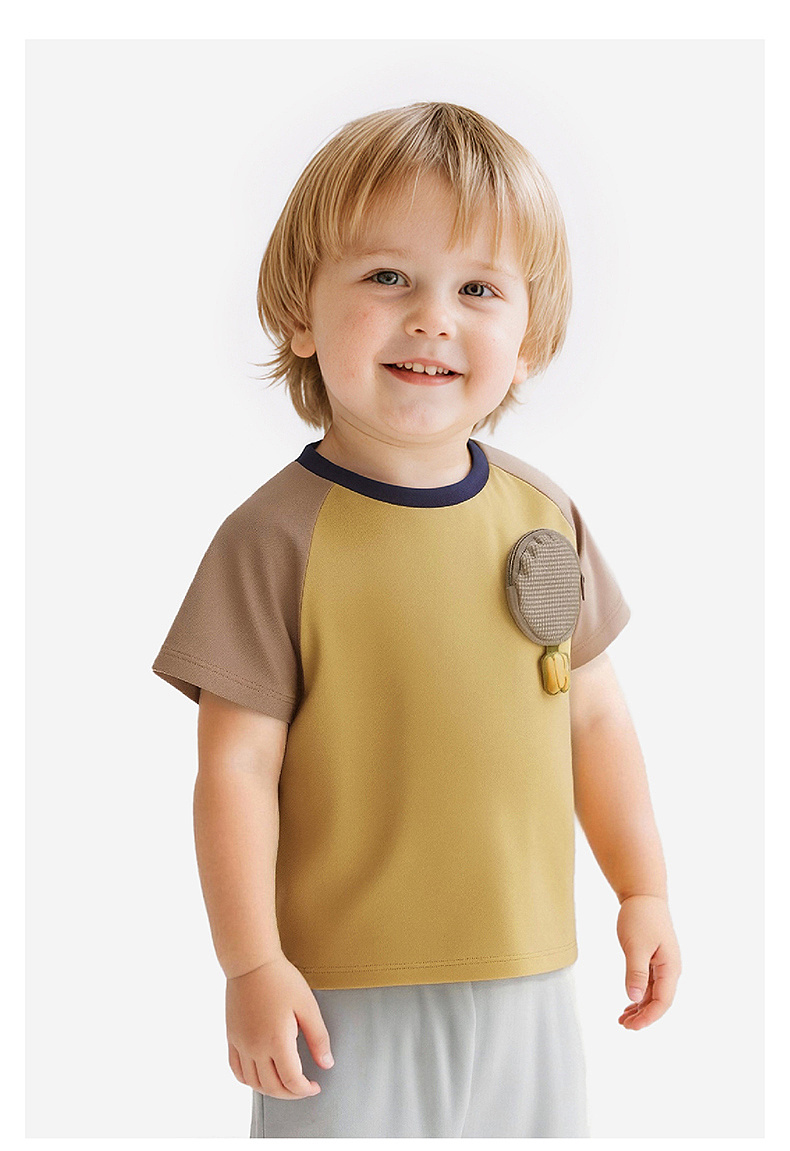 【100%精梳棉】英氏儿童衣服男童圆领百搭上衣夏装短袖T恤针织卡通纯棉薄款上衣