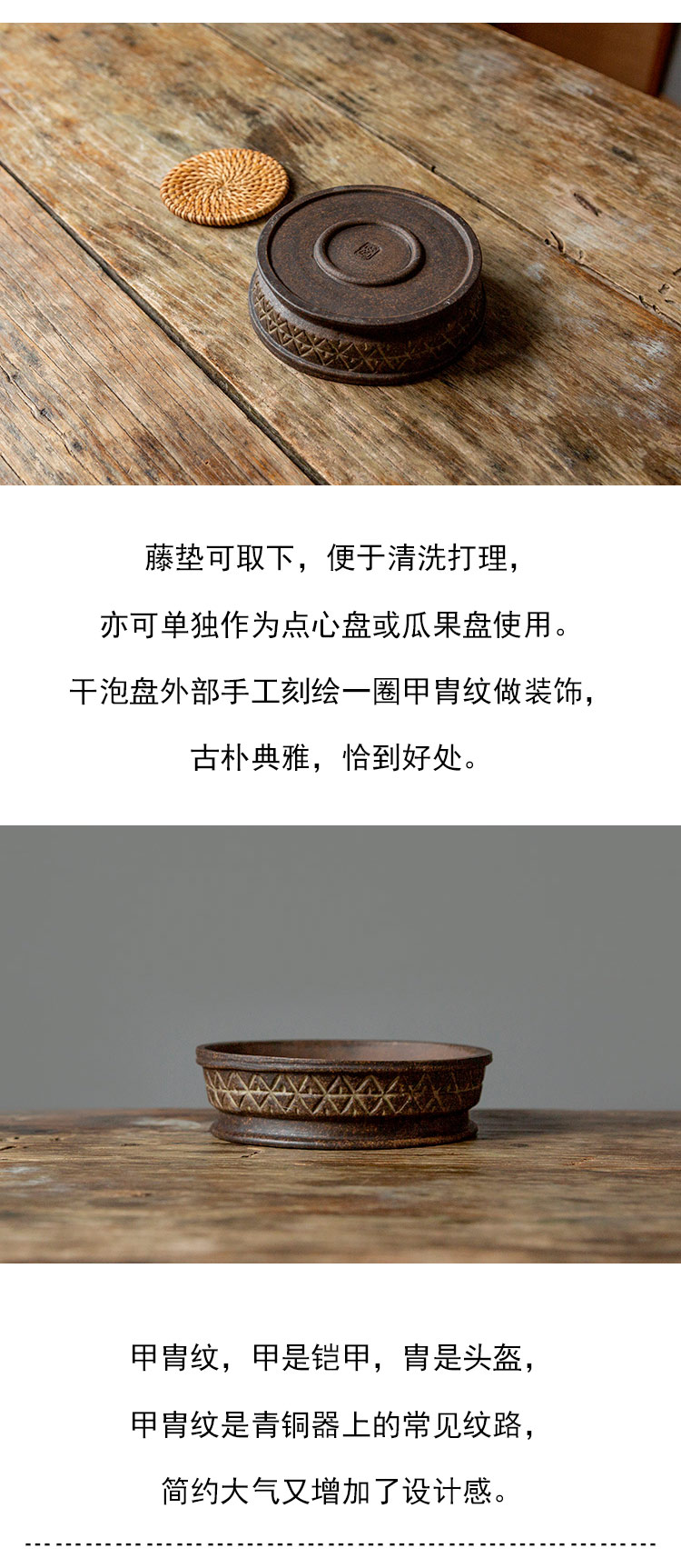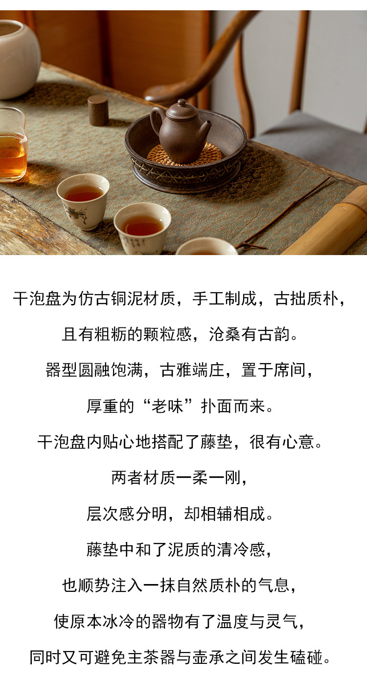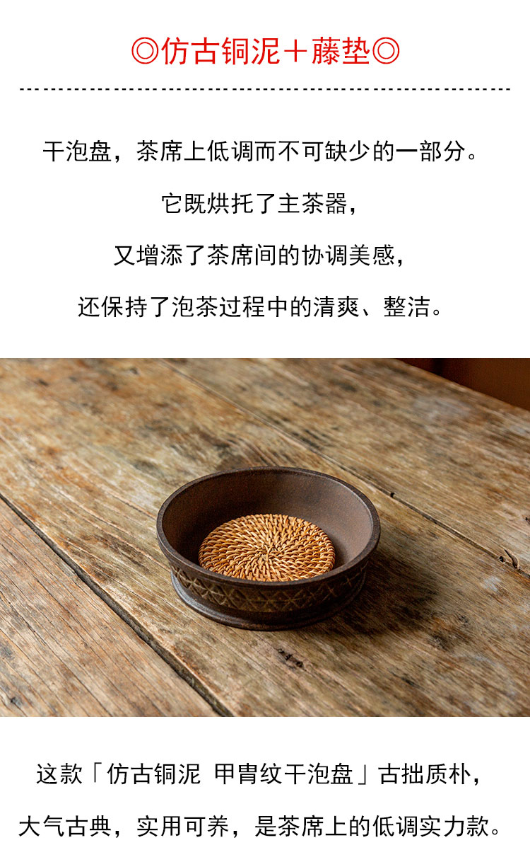 茶香记 仿古铜泥甲胄纹干泡盘壶承手工制作古拙质朴大气沉稳茶具