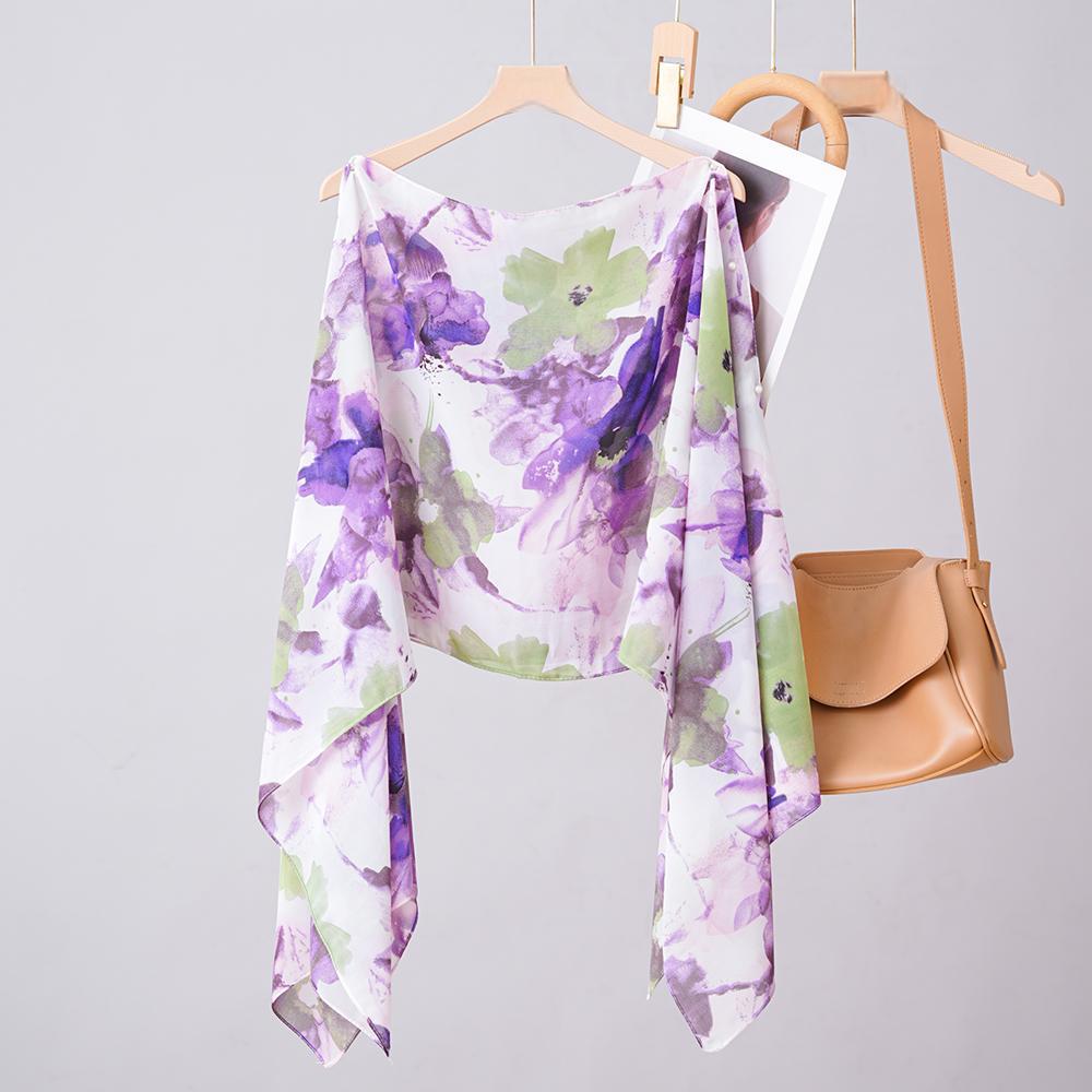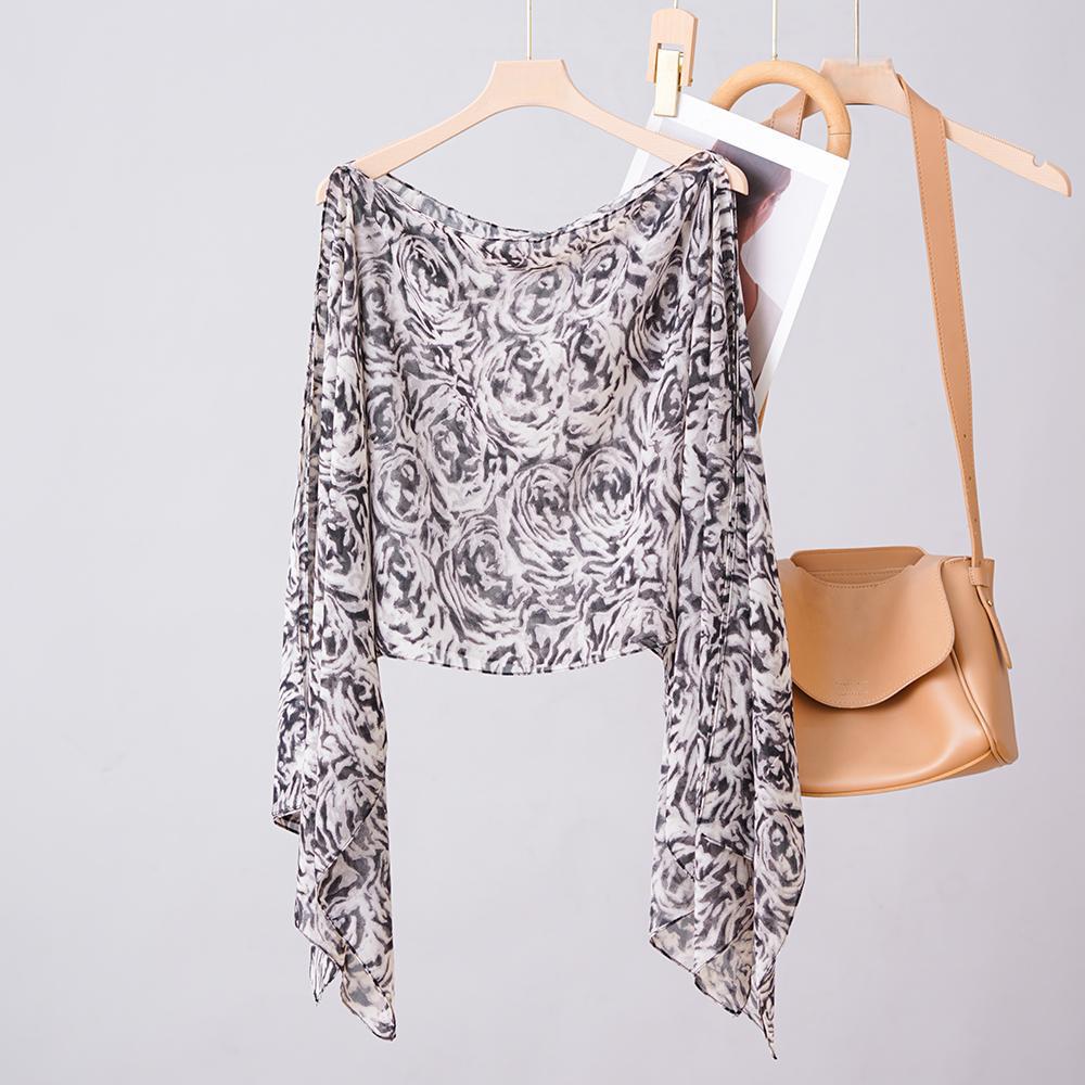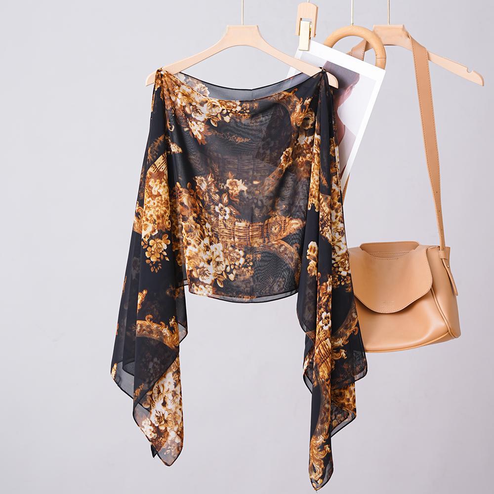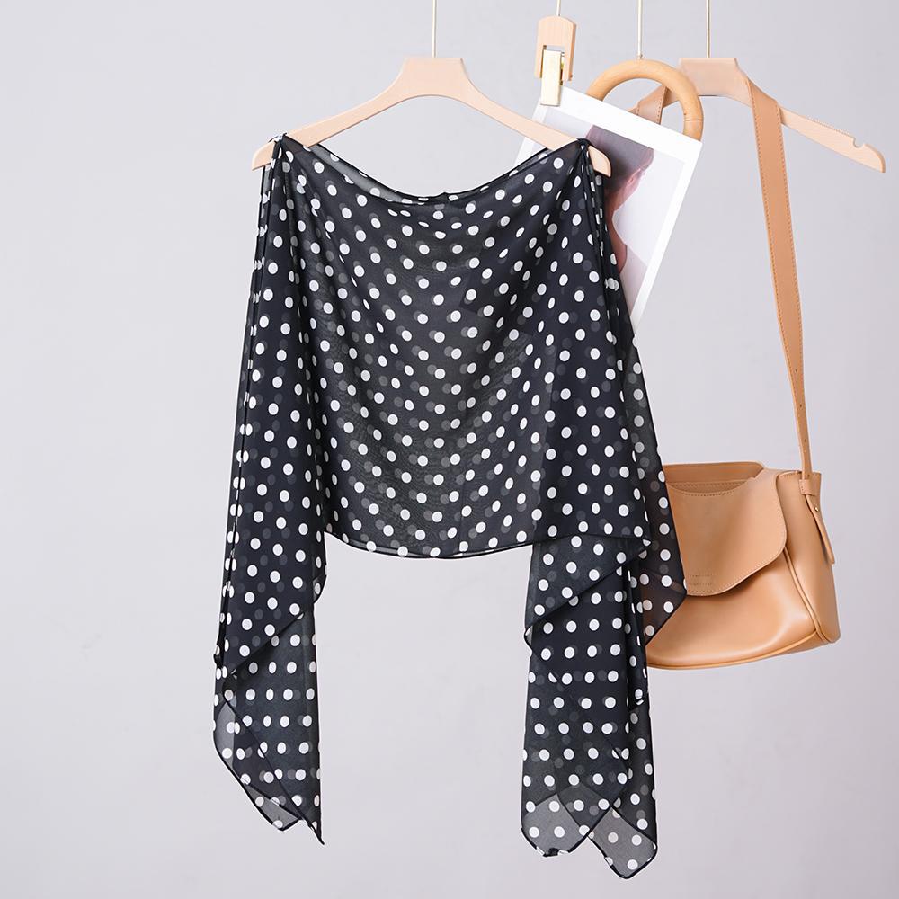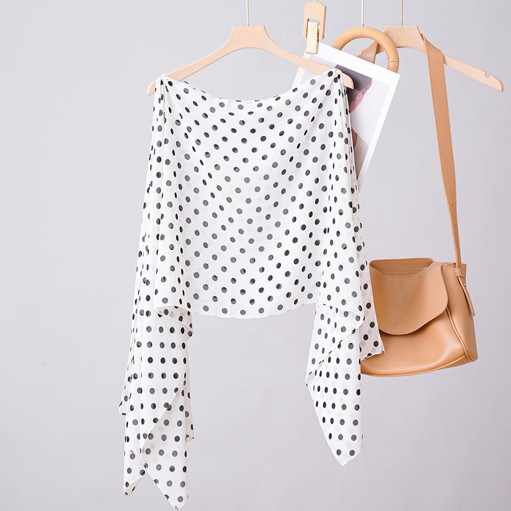 2025夏季新款外出拍照时尚波点印花钉珠套头防晒披肩显瘦上衣外搭