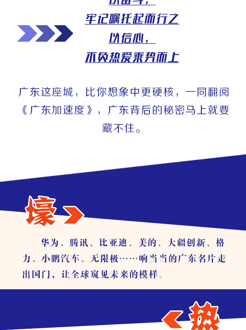 1.《广东加速度》为广东教育出版社“献礼二十大”主题出版大型全媒体项目,共包含”1本主题出版读物+1个数字藏品+1部纪录片+1首MV”,以丰富、时尚、创新的多元载体带领广大读者共同“见证广东速度,诠释中国力量”。读懂广东,这一本就够了!