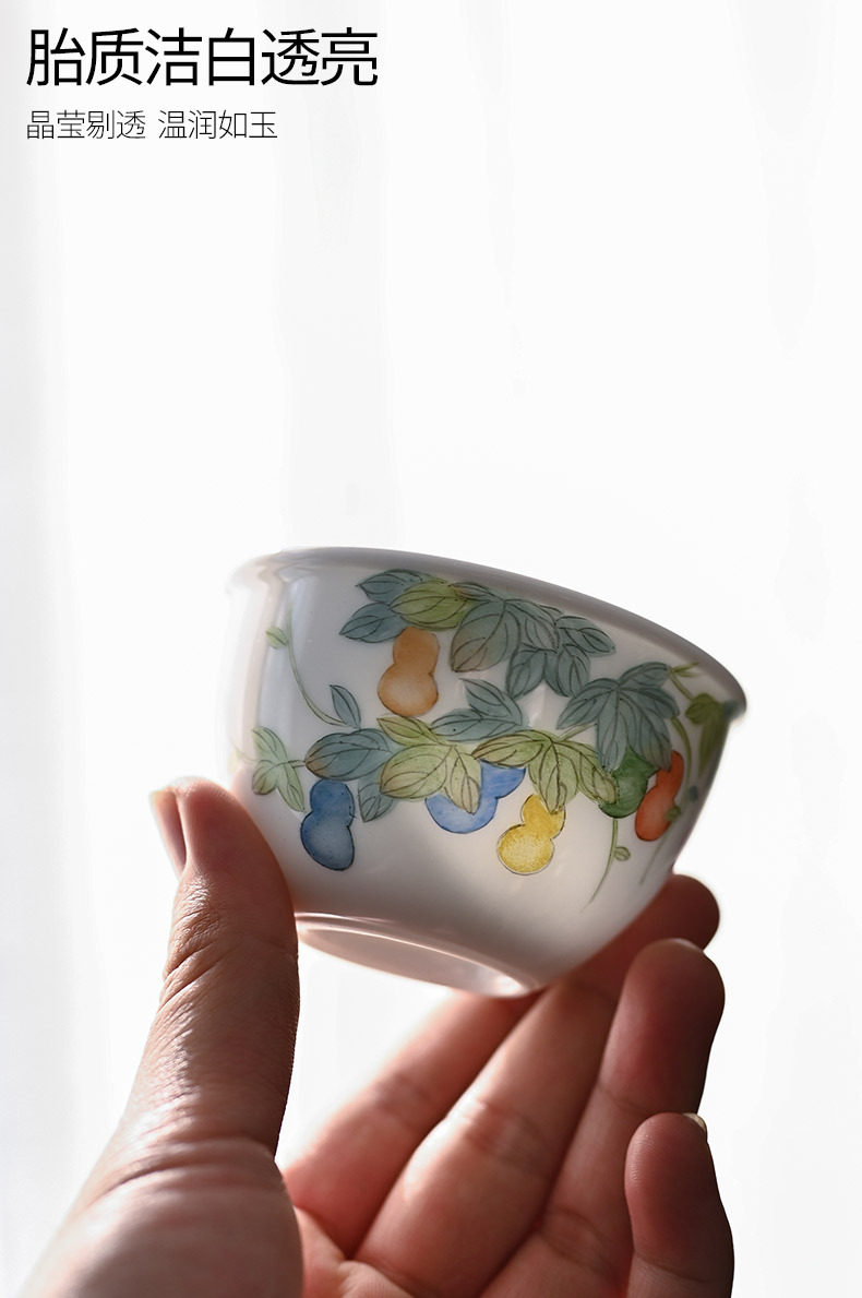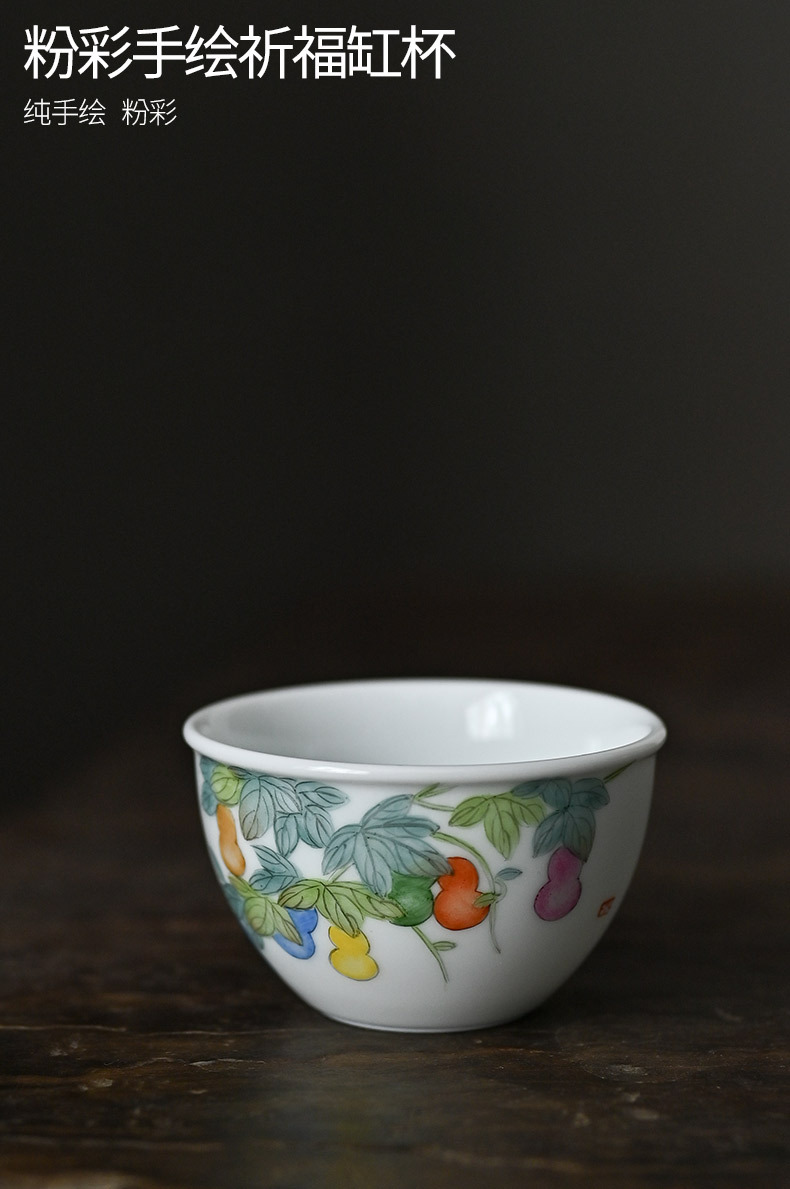 「景德镇手拉坯主人杯」粉彩手绘福禄缸式杯 大号玉泥白瓷主人杯