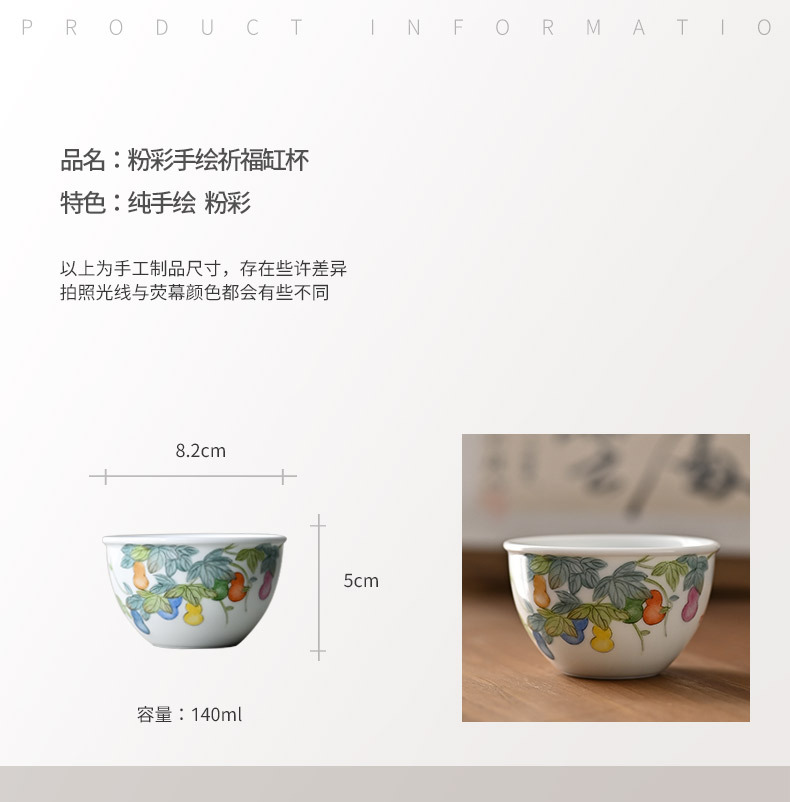 「景德镇手拉坯主人杯」粉彩手绘福禄缸式杯 大号玉泥白瓷主人杯 商品图4
