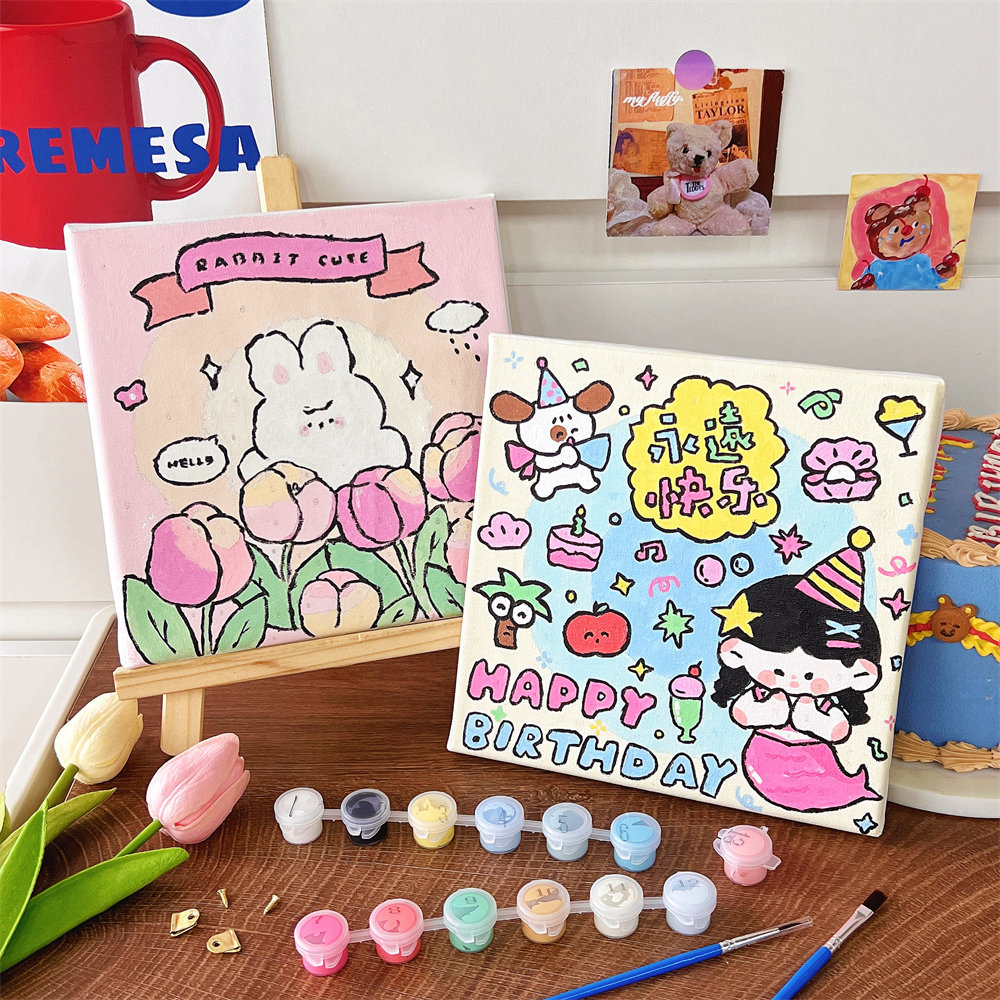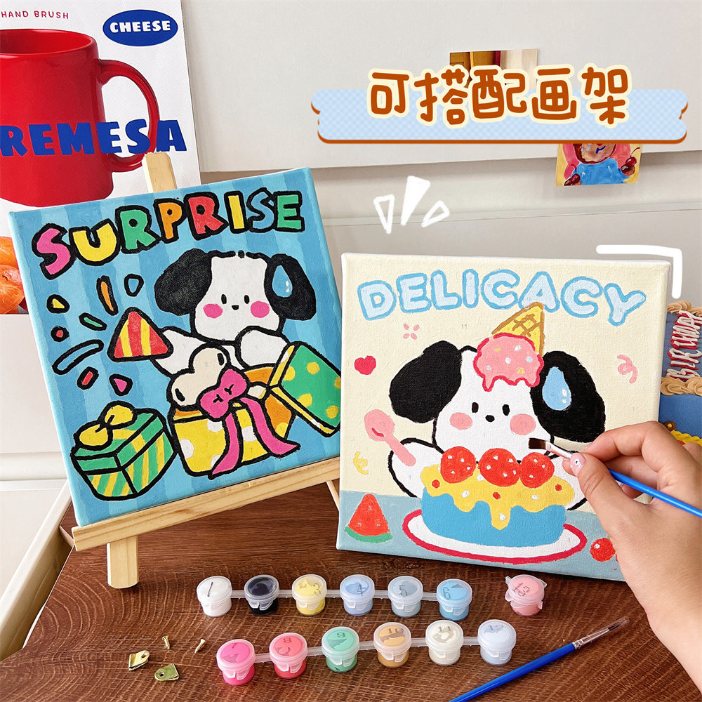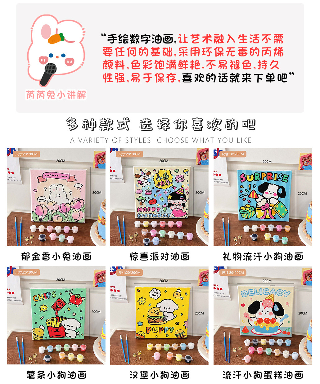 【多种款式!每款都好可爱呀】DIY填充儿童数字油画装饰画,可爱卡通动物手工填色治愈画,化解烦恼 可搭配画架 材料齐全