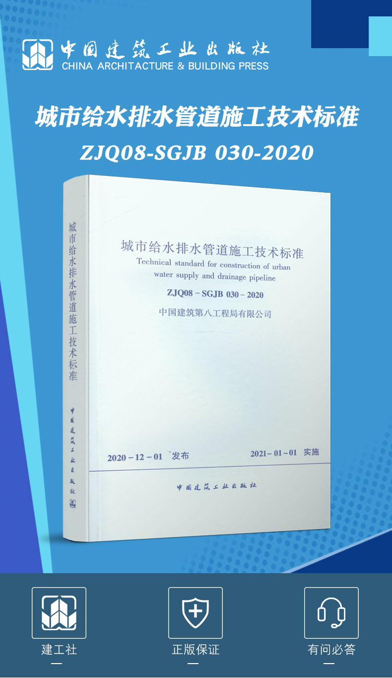 书名:城市给水排水管道施工技术标准ZJQ08-SGJB 030-2020