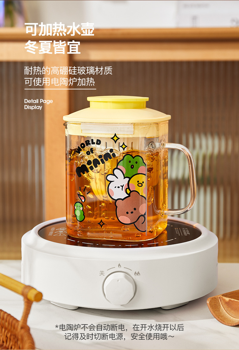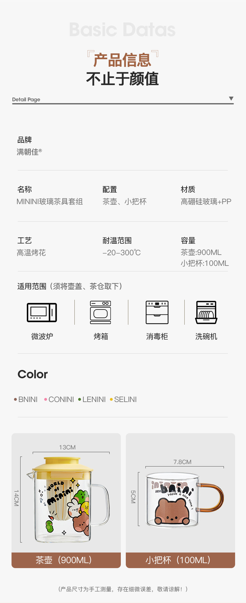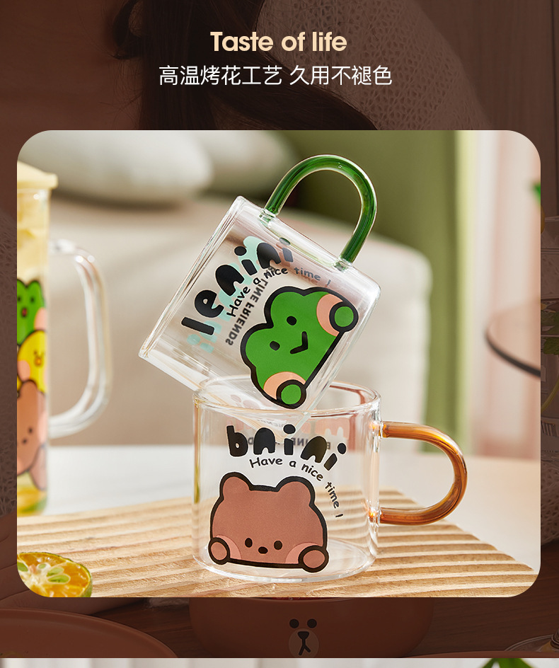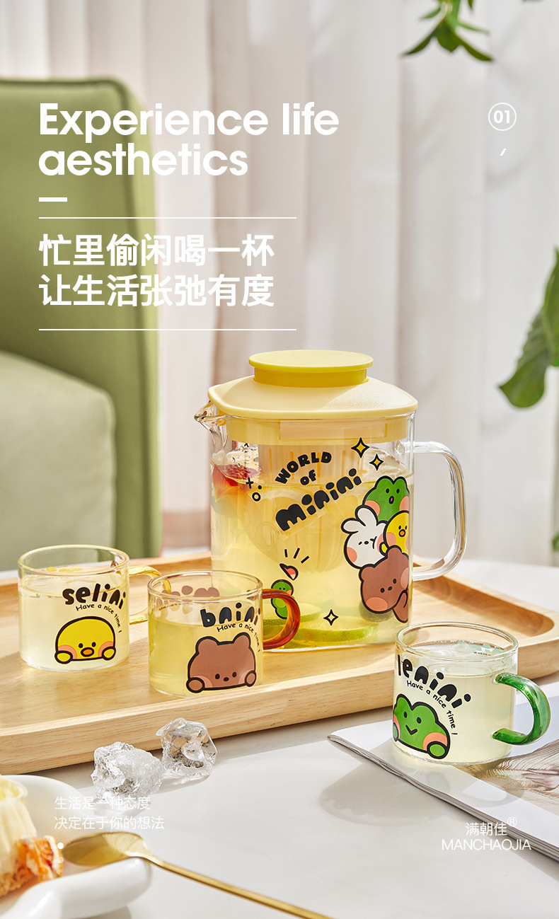 【忙里偷闲喝一杯,让生活张弛有度~】布朗熊冷水壶 耐高温家用凉水壶 玻璃高级感水杯套装 饮料花茶冷泡壶-QQ