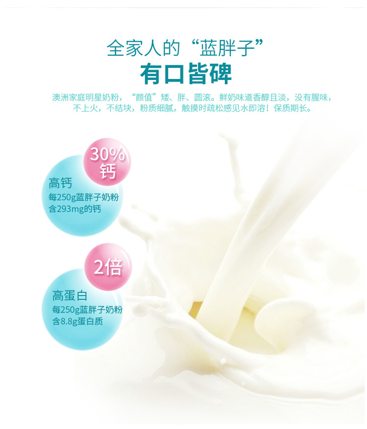 【海外直邮】Maxigenes/美可卓 蓝胖子 全脂/脱脂高钙奶粉 1kg