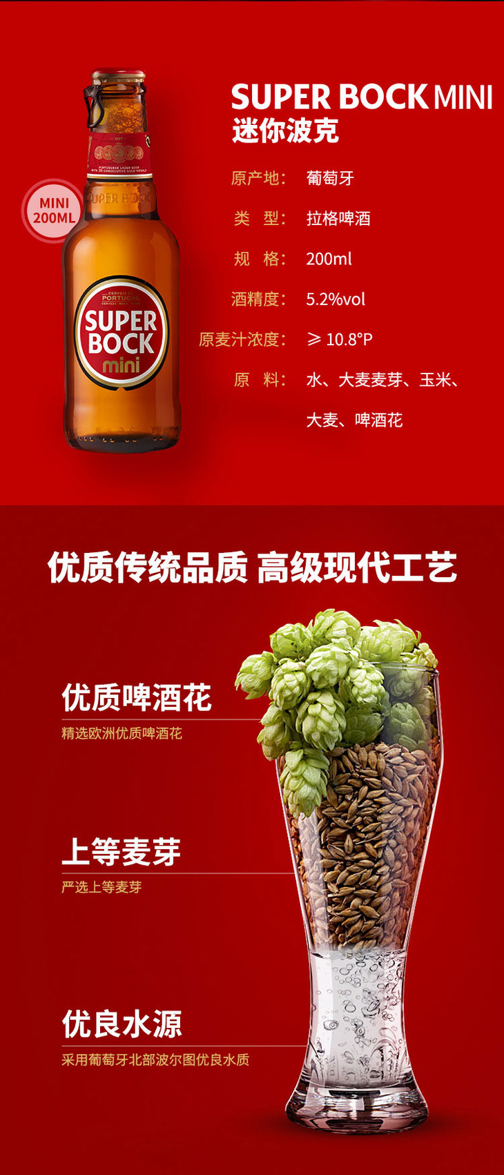【预售-12月22日配送】葡萄牙SuperBock超级波克啤酒/1箱(200ml*15瓶)生产日期:25年8月