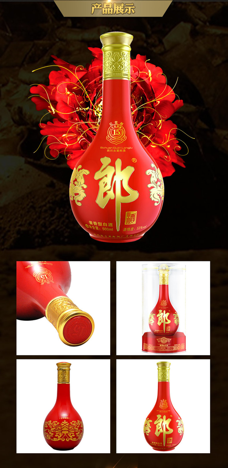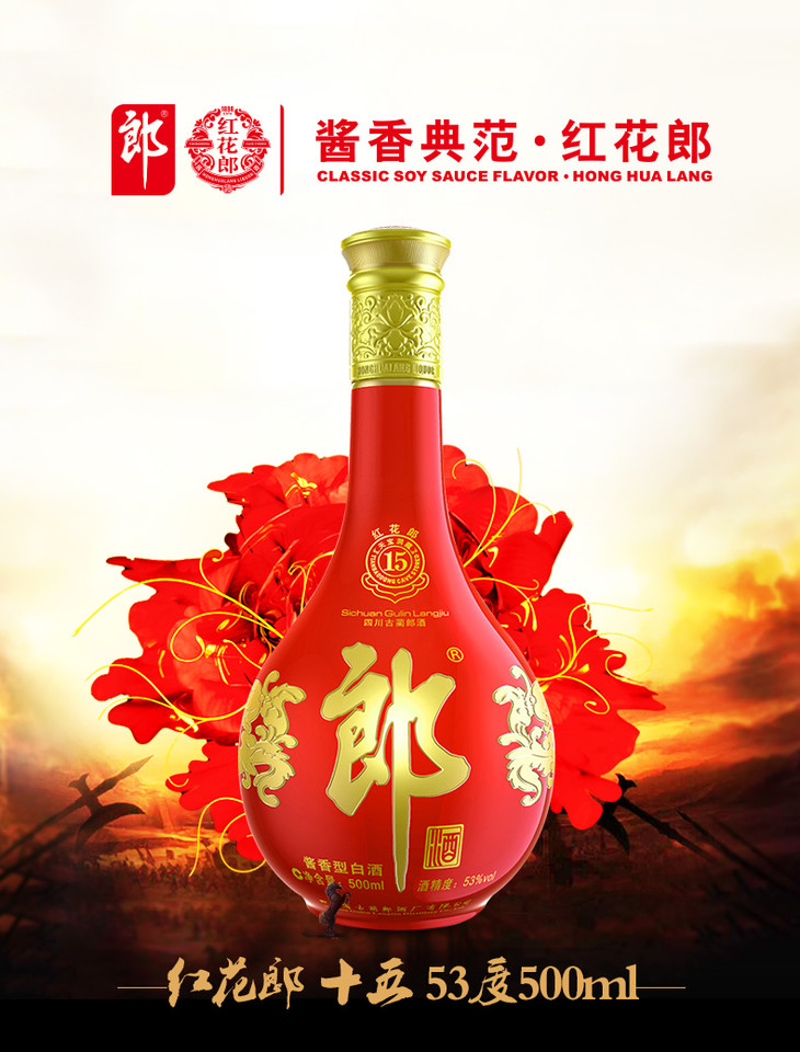 【推荐】郎酒 红花郎十五(15) 陈酿 53度 单瓶装白酒 500ml 酱香型