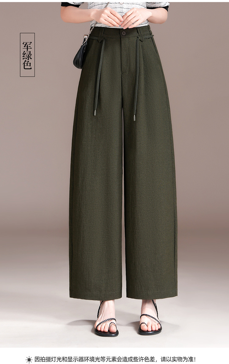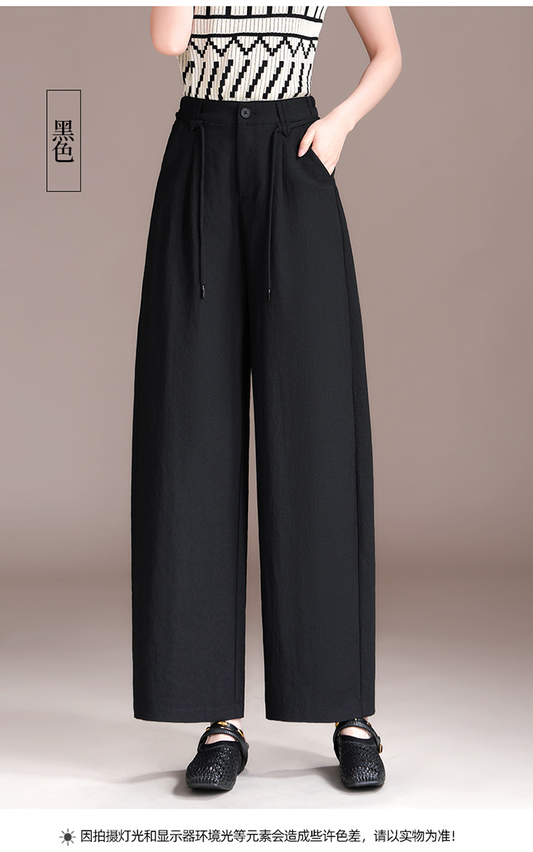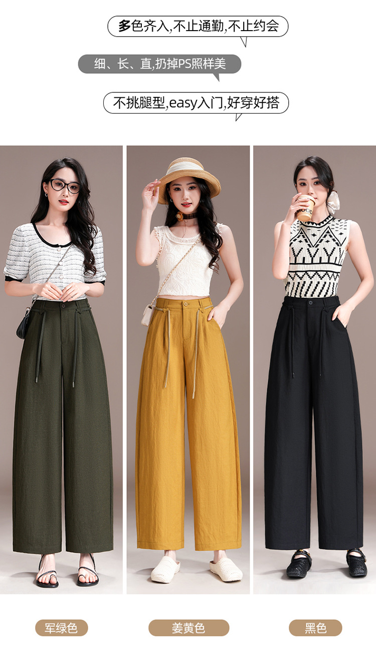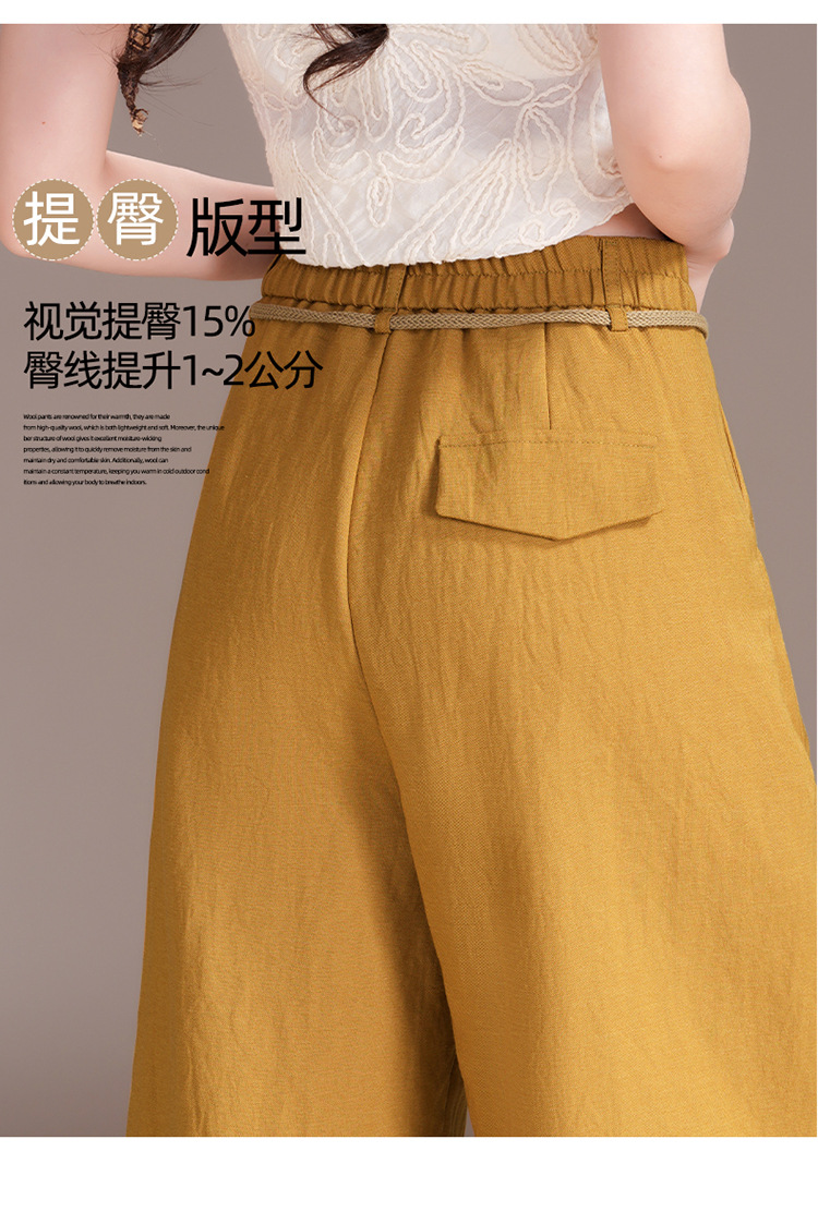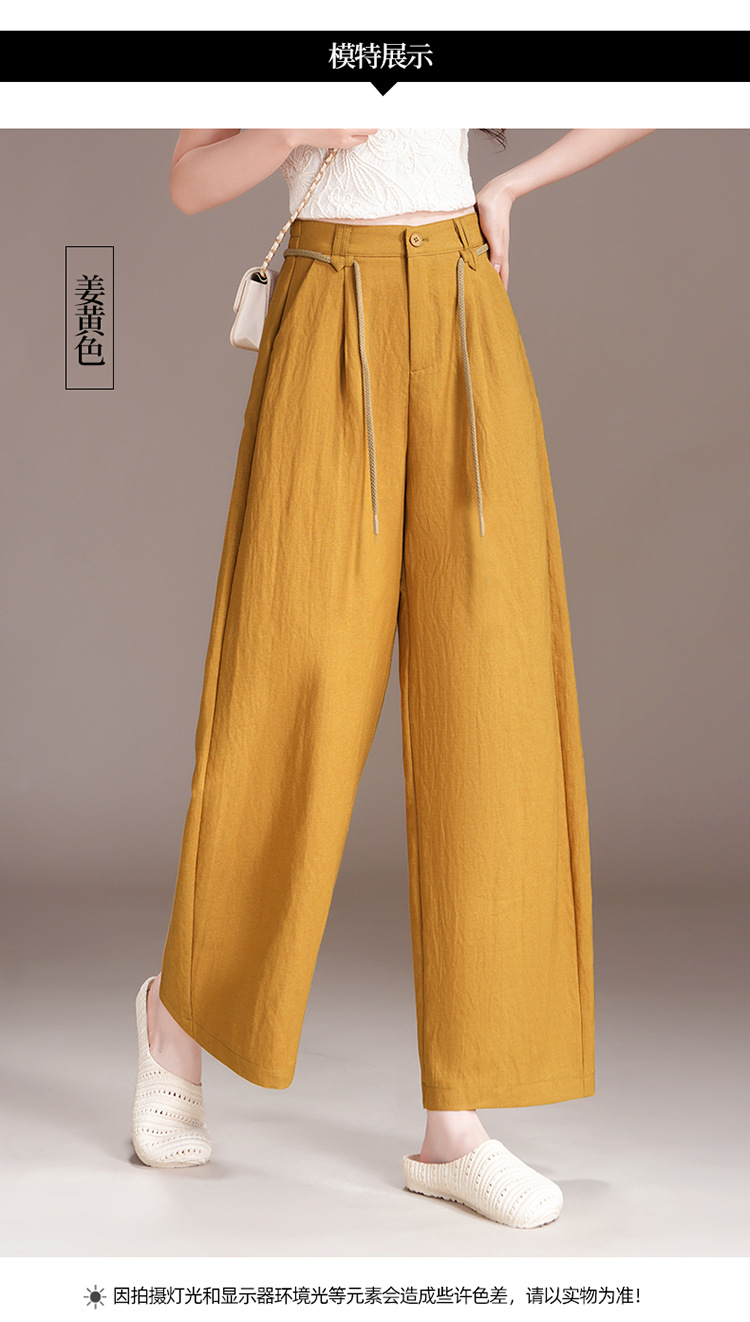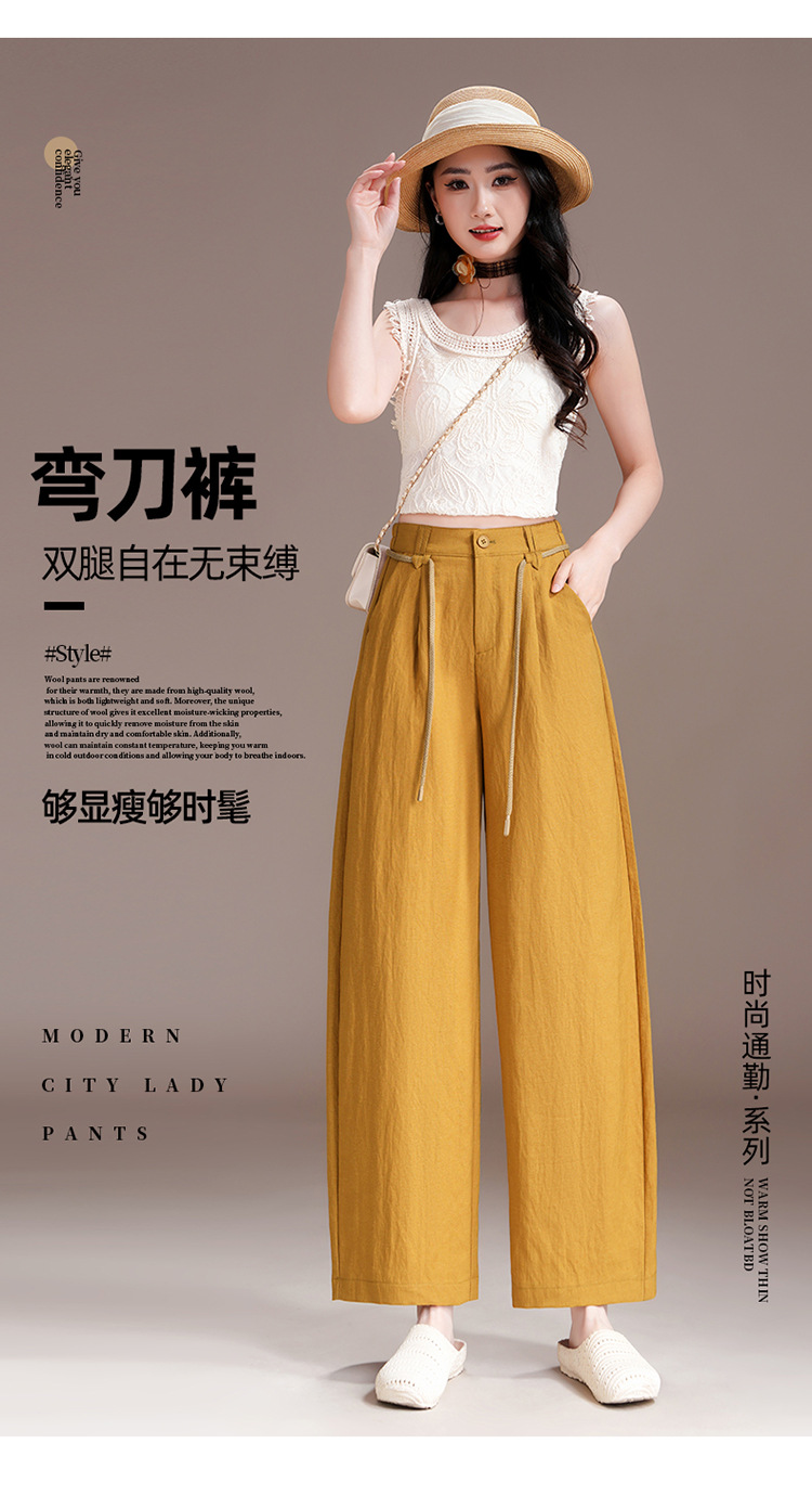 百媚生 天丝亚麻弯刀裤女垂坠感高腰宽松九分休闲裤2676