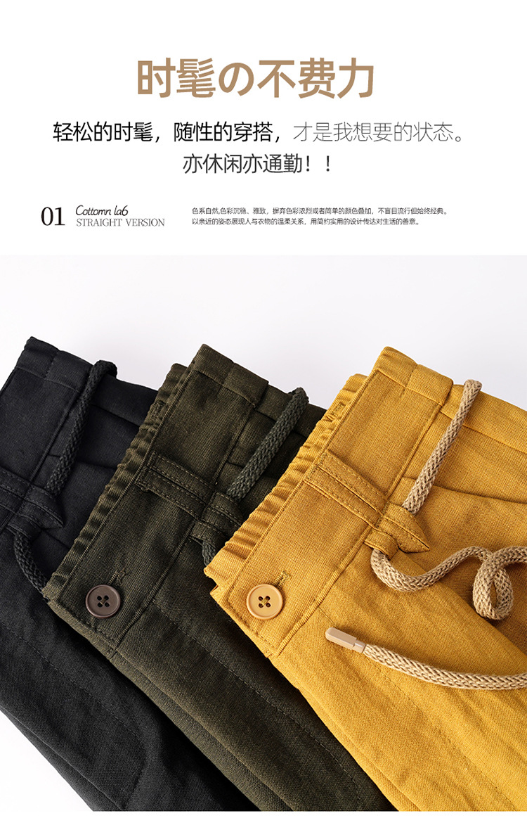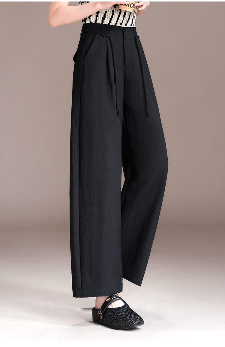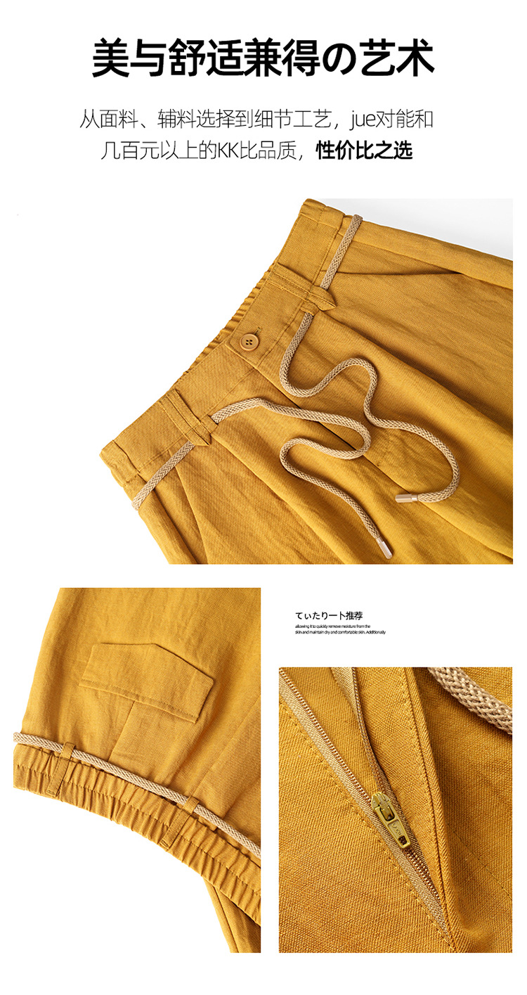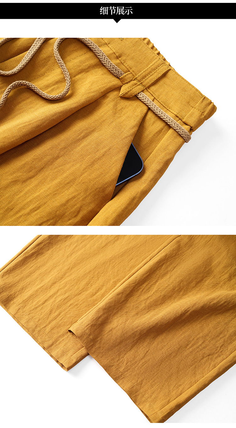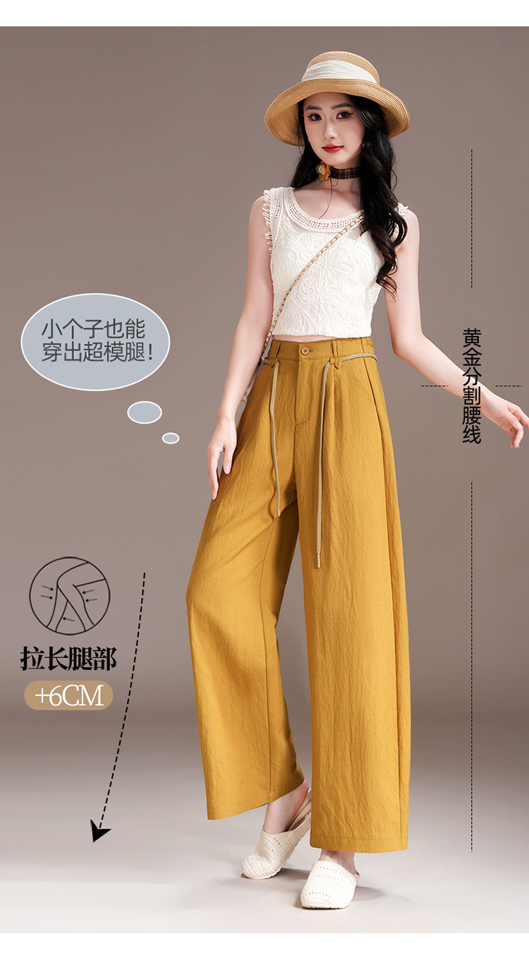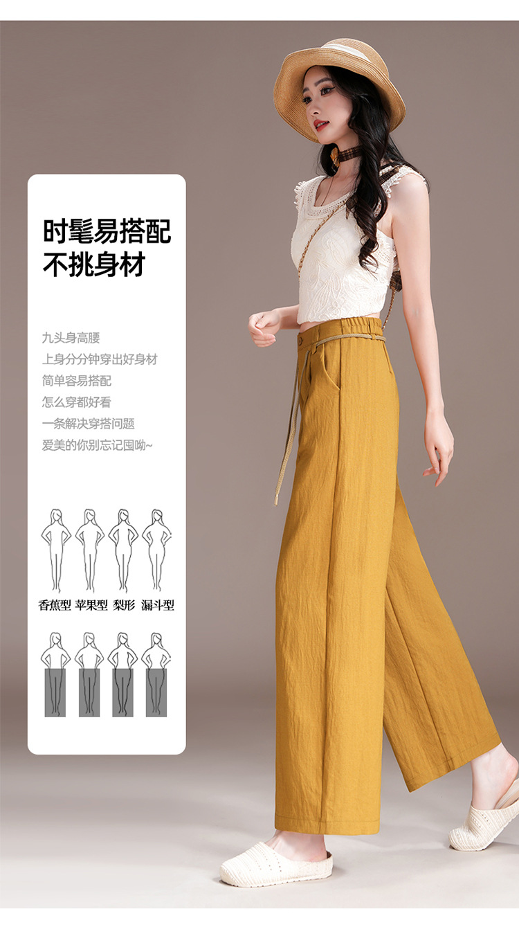 百媚生 天丝亚麻弯刀裤女垂坠感高腰宽松九分休闲裤2676