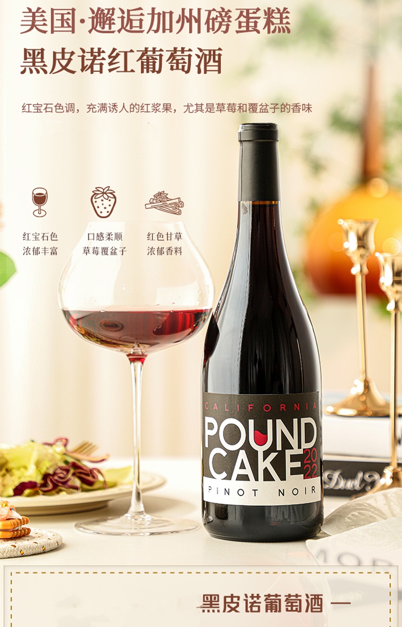 【甜酒新品】美国邂逅加州磅蛋糕黑皮诺红葡萄酒750ml