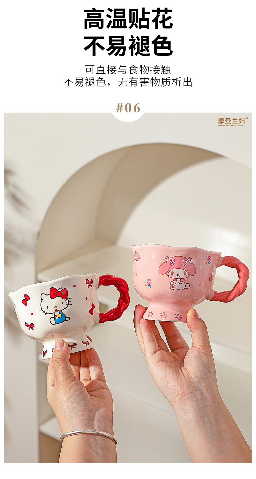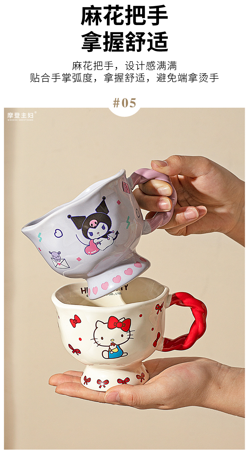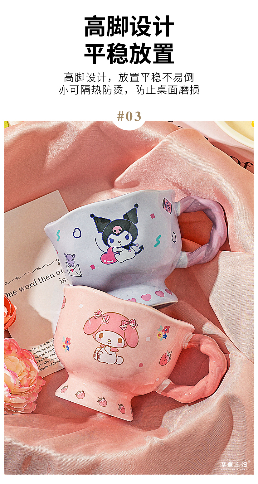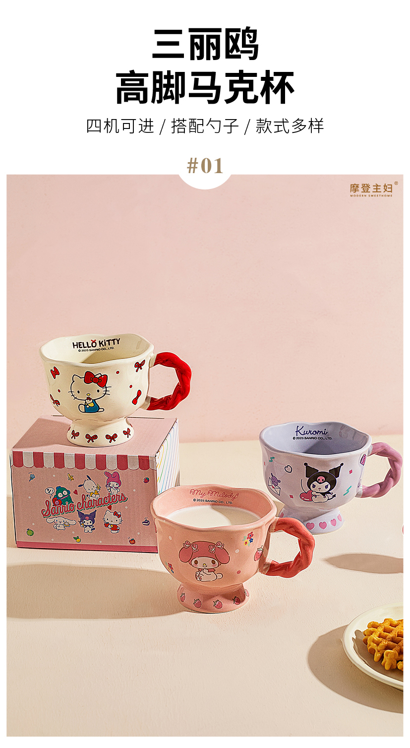摩登主妇三丽鸥高脚马克杯带勺陶瓷咖啡杯子高颜值家用水杯早餐杯
