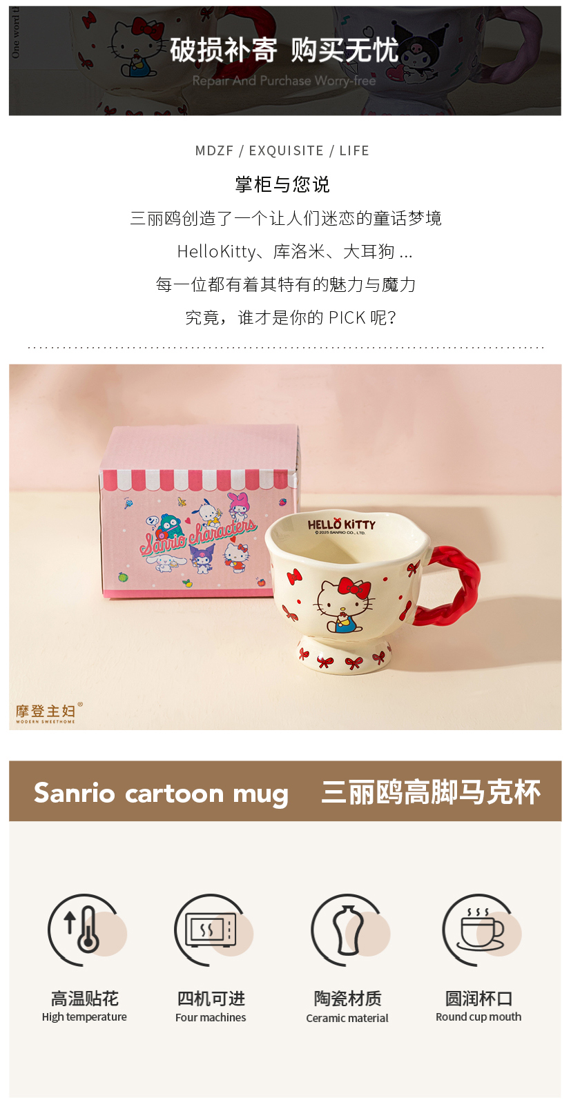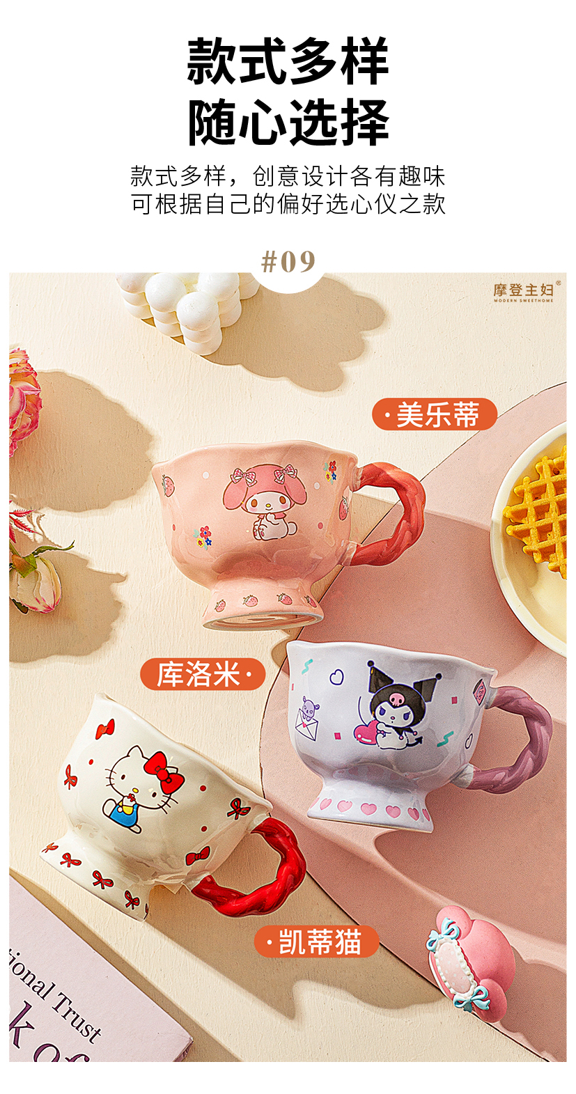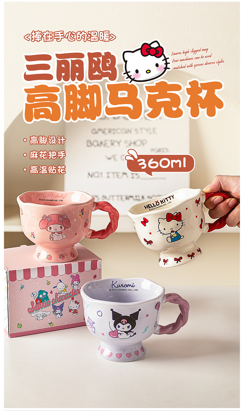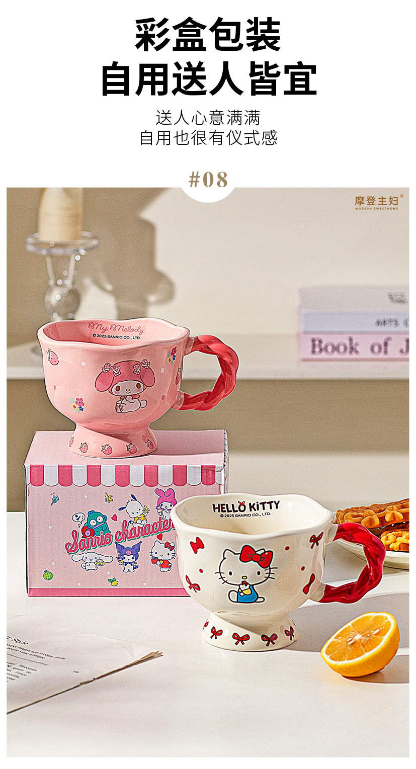 摩登主妇三丽鸥高脚马克杯带勺陶瓷咖啡杯子高颜值家用水杯早餐杯