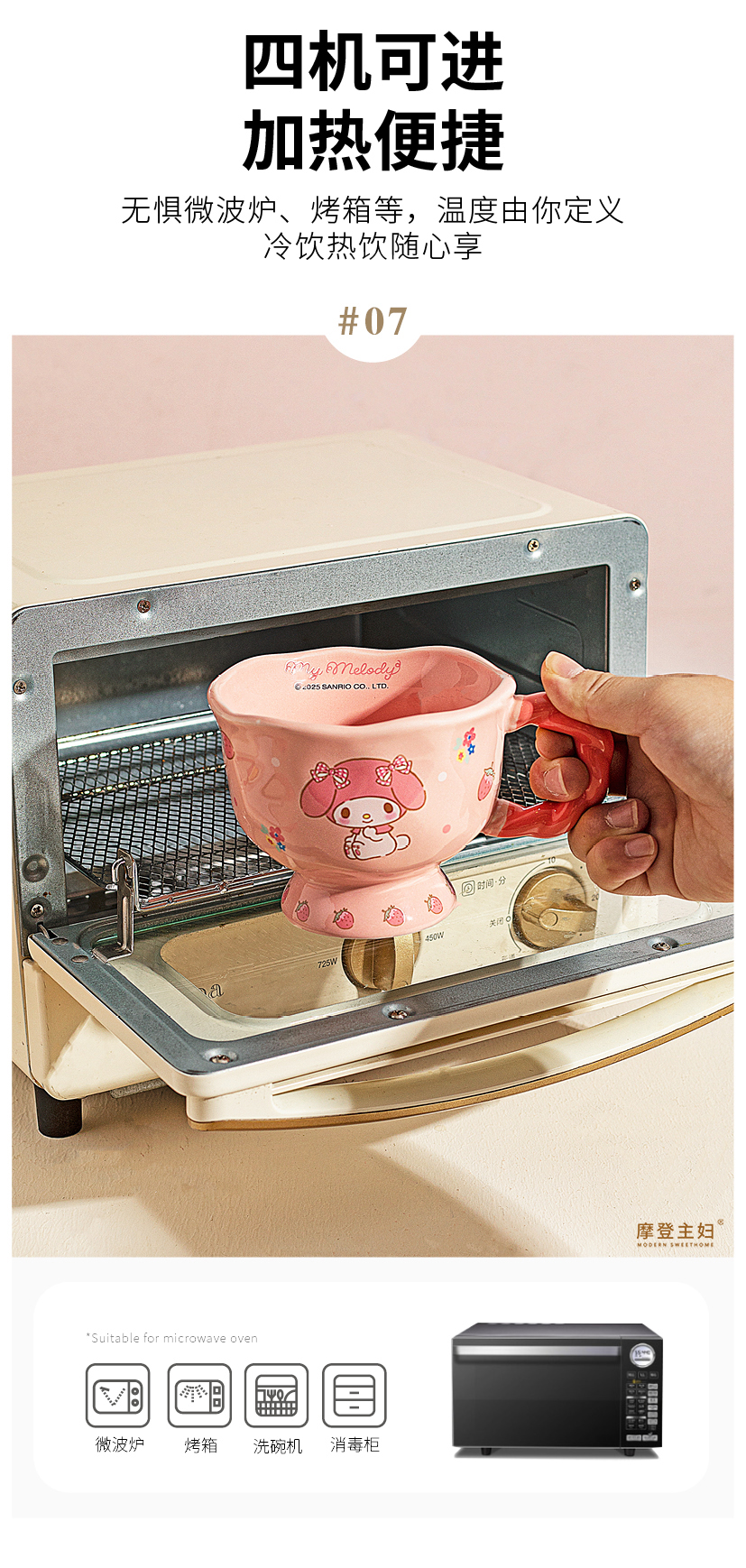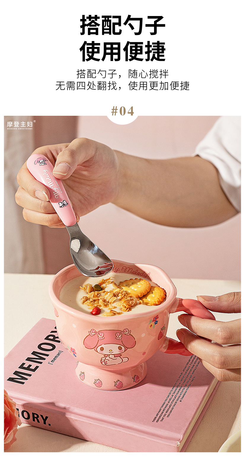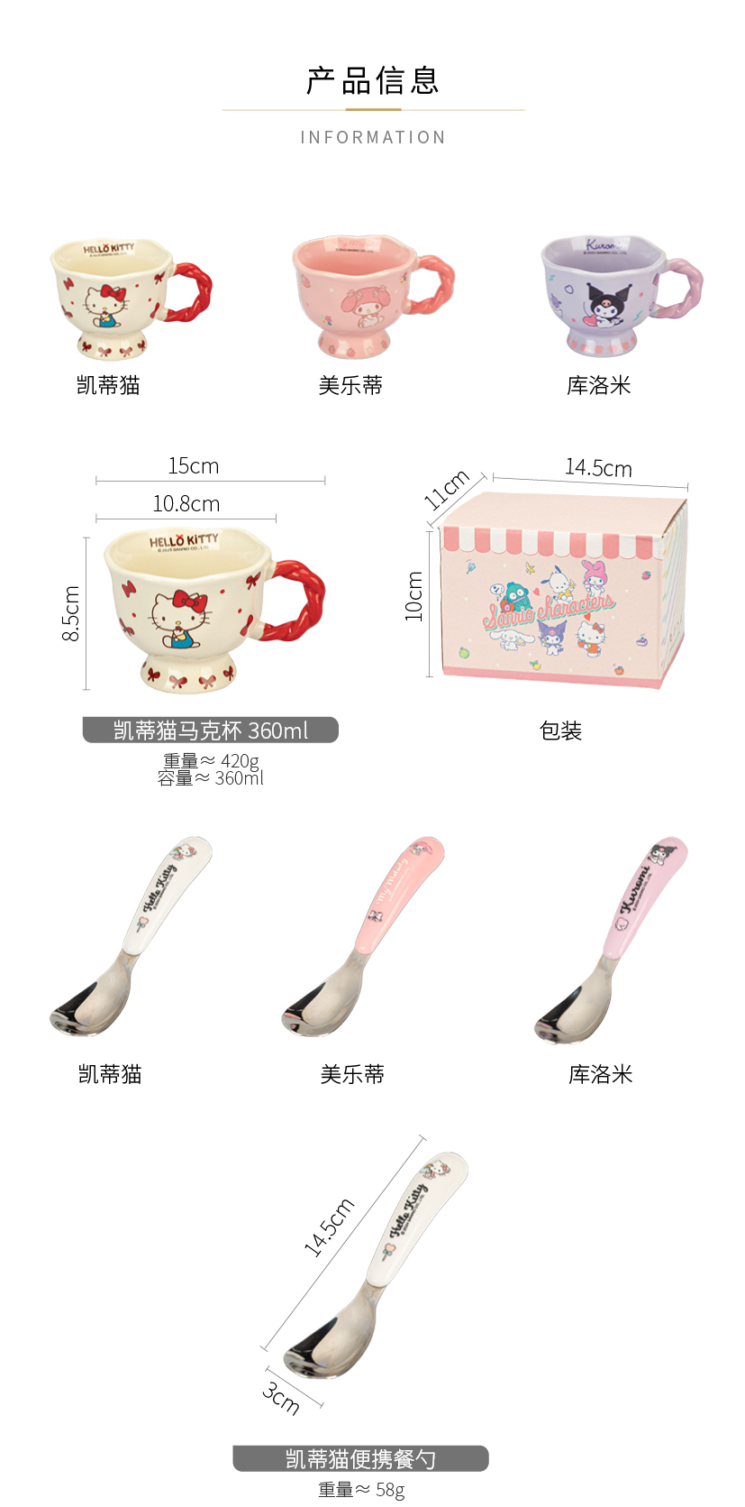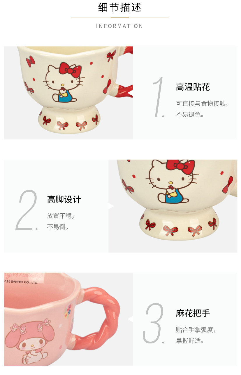 摩登主妇三丽鸥高脚马克杯带勺陶瓷咖啡杯子高颜值家用水杯早餐杯