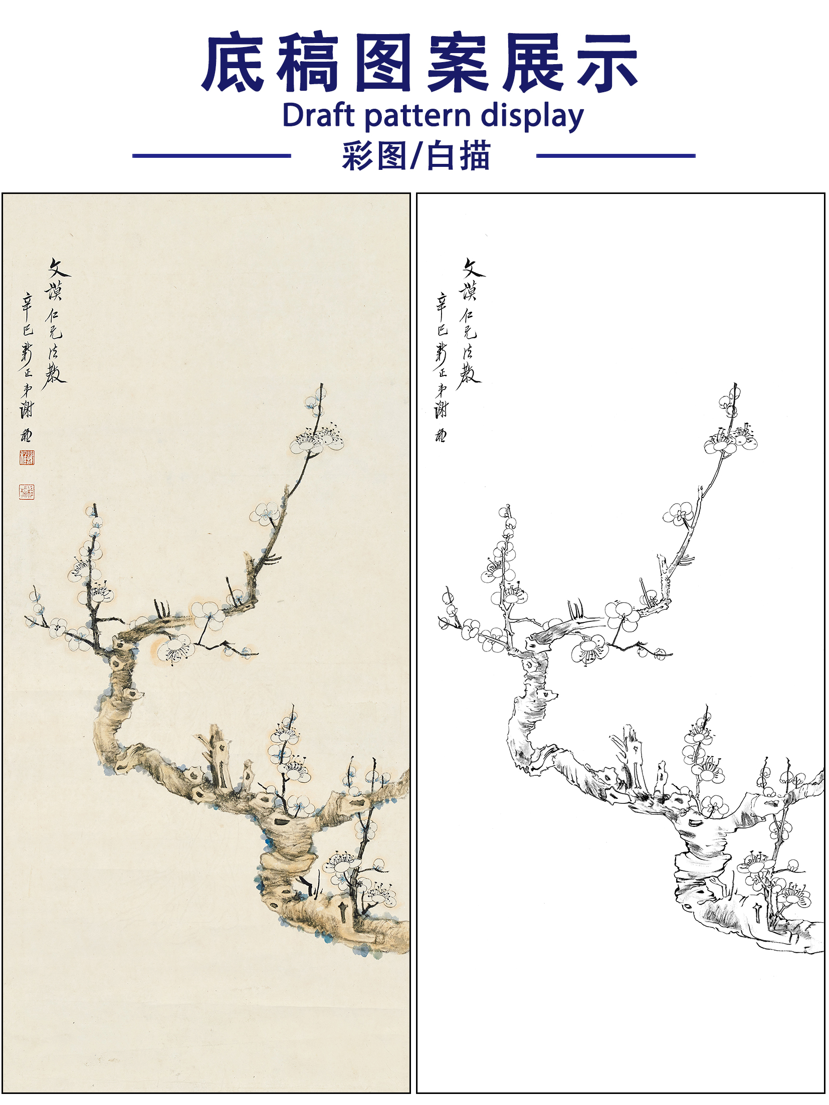谢稚柳花鸟工笔画白描底稿《梅花》临摹勾线高清打印稿XZ50