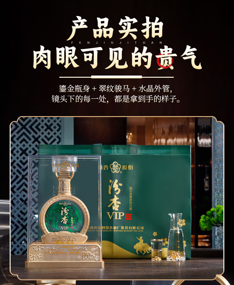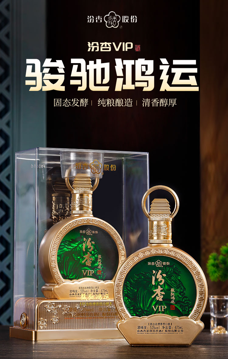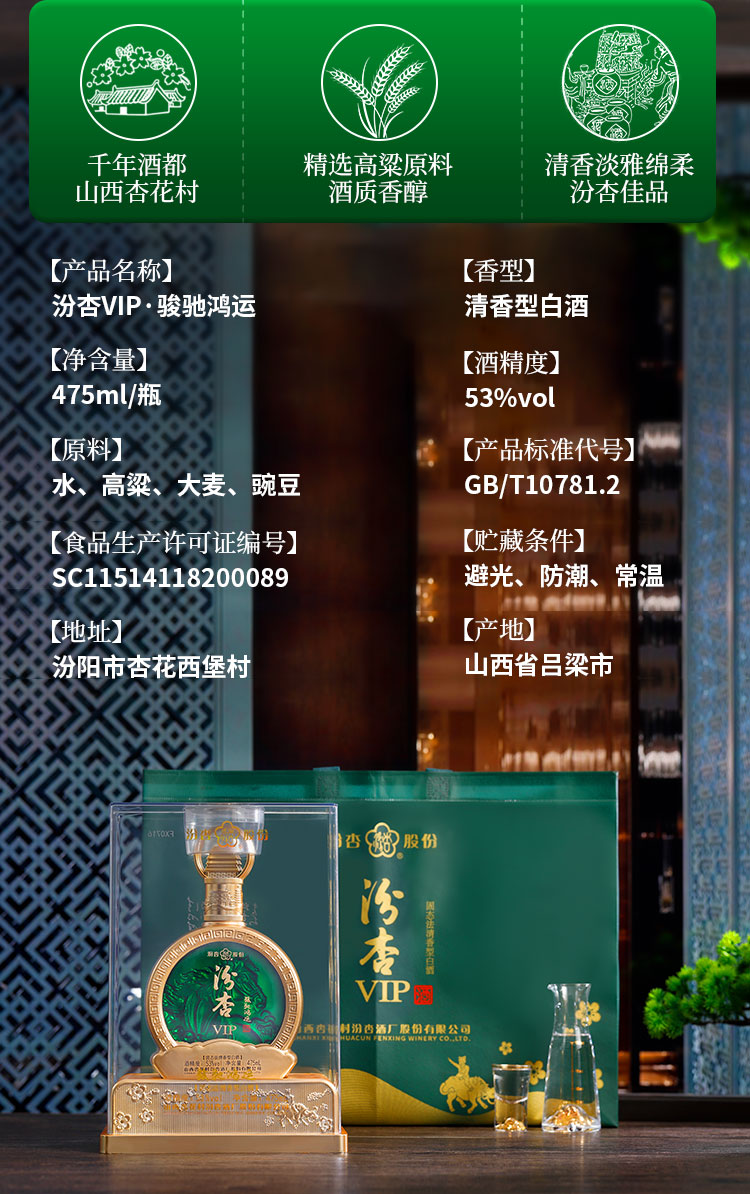 【瓶身浮雕奔腾骏马 】汾杏VIP·骏驰鸿运 固态法清香型53度 475ml*2/6瓶