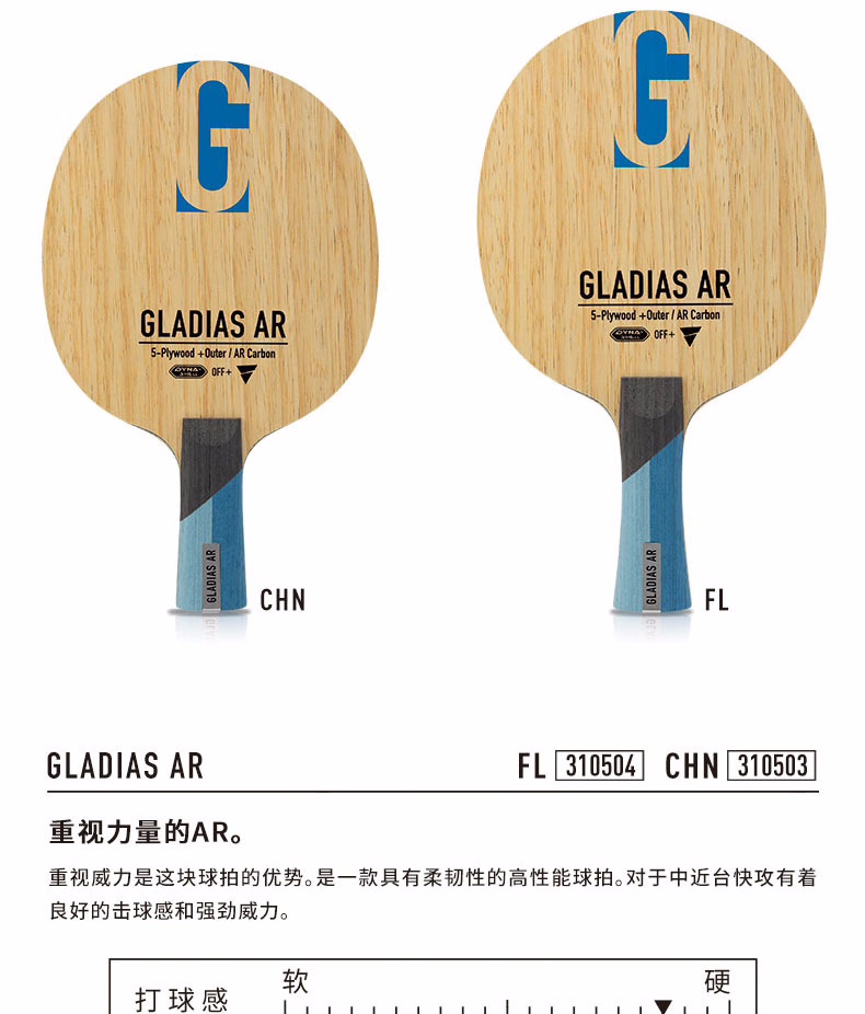 Victas维克塔斯乒乓球拍底板31050 GLADIAS AR进攻型碳素外置中近台快攻