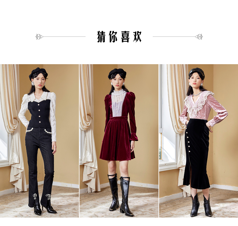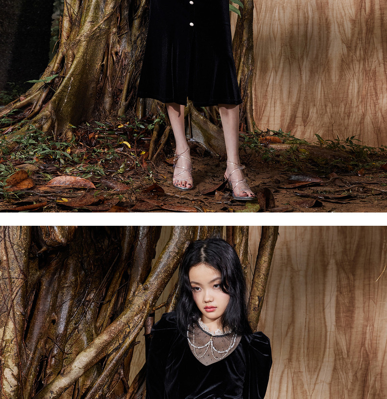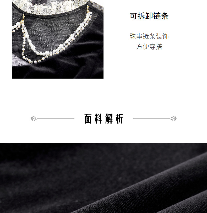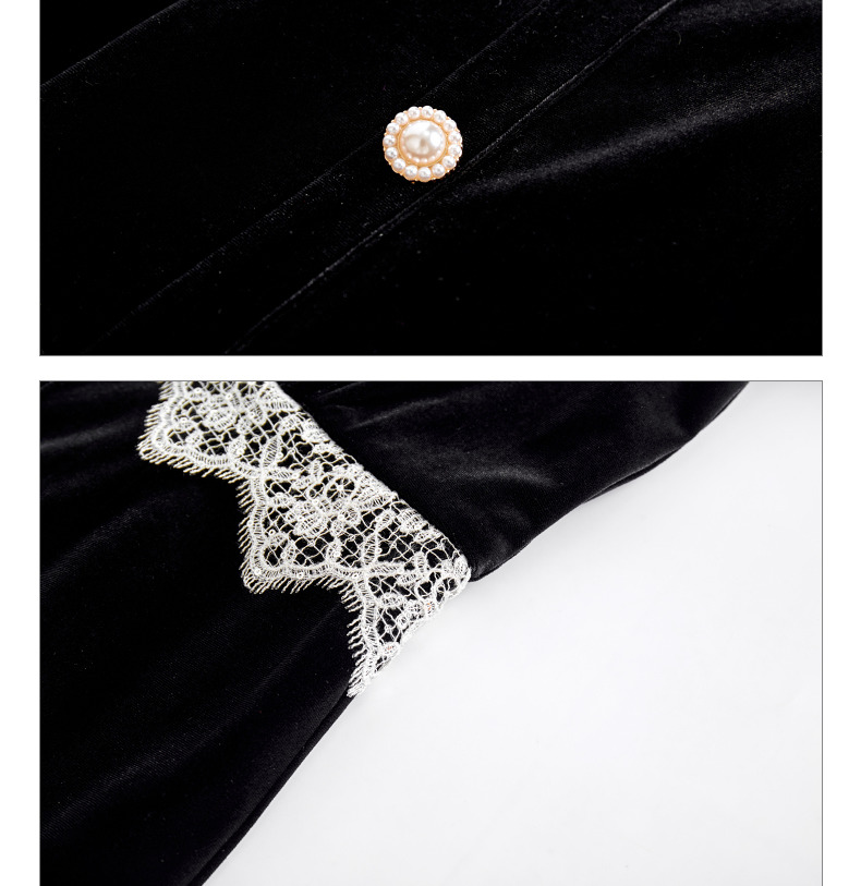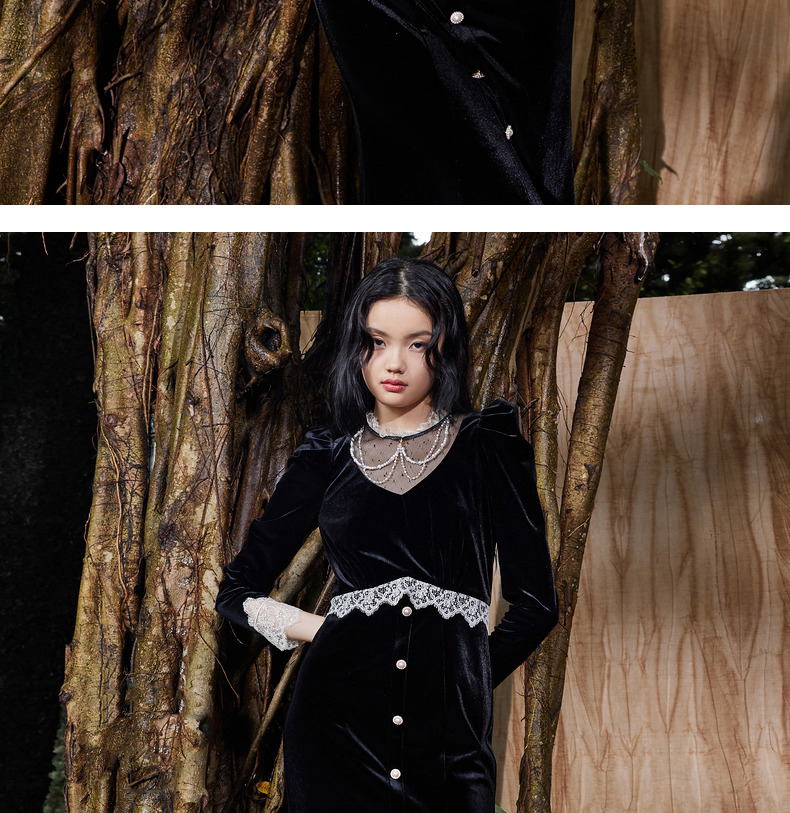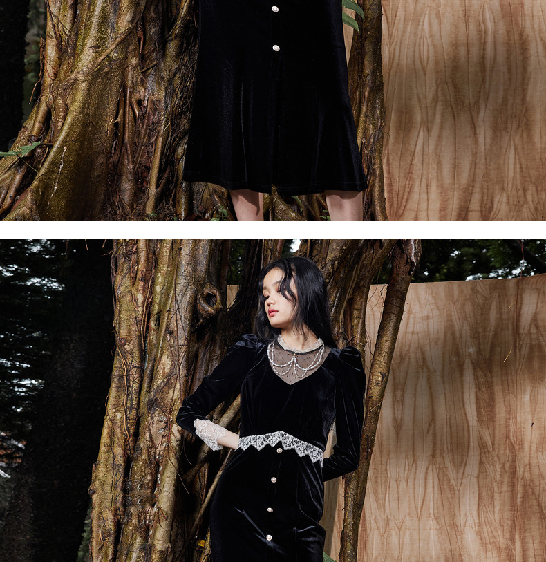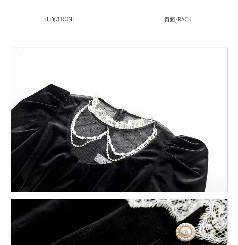 MAXRIENY丝绒连衣裙法式蕾丝裙泡泡袖赫本风长裙(货号:MS87DR514)