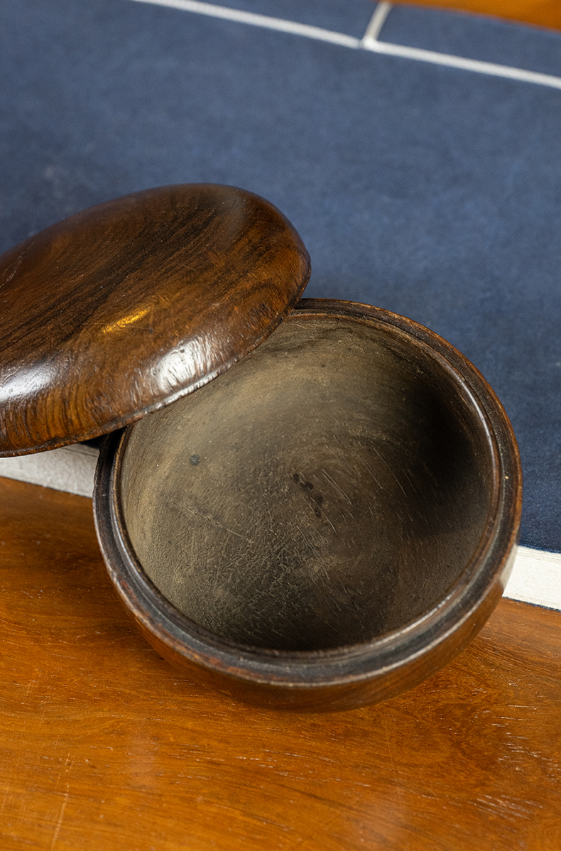 清 青金石嵌绿松石莲花盖盒(红木座)