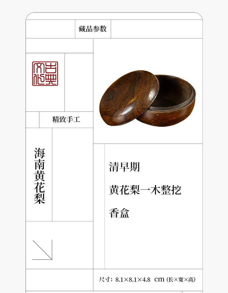 清早期 黄花梨一木整挖香盒