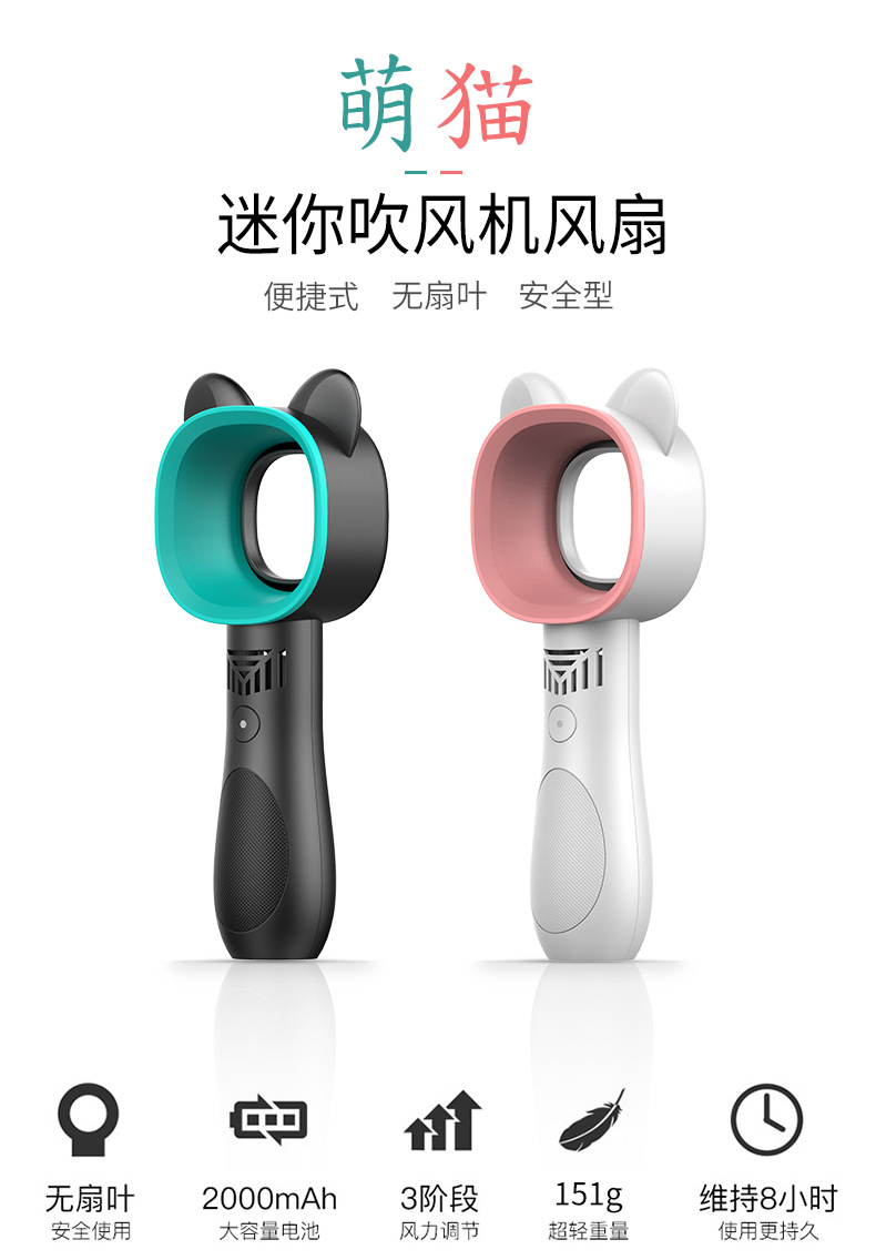 【国庆出游季~】新款升级无叶迷你小风扇 创意桌面手持便携式 usb礼品睫毛风扇 迷你吹风机风扇 便捷式 无扇叶安全型-QQ