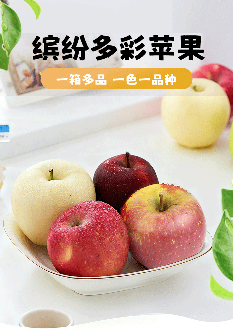 【精美礼盒】多彩苹果组合 | 缤纷多彩苹果礼盒装 新鲜水果多色苹果混装85mm+ 9个/12个装 手提礼盒