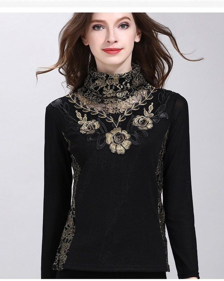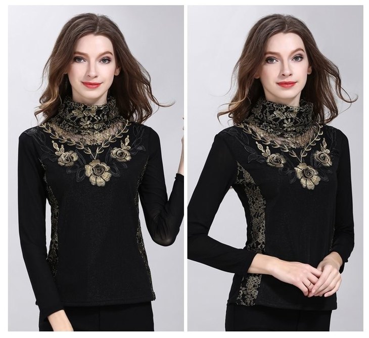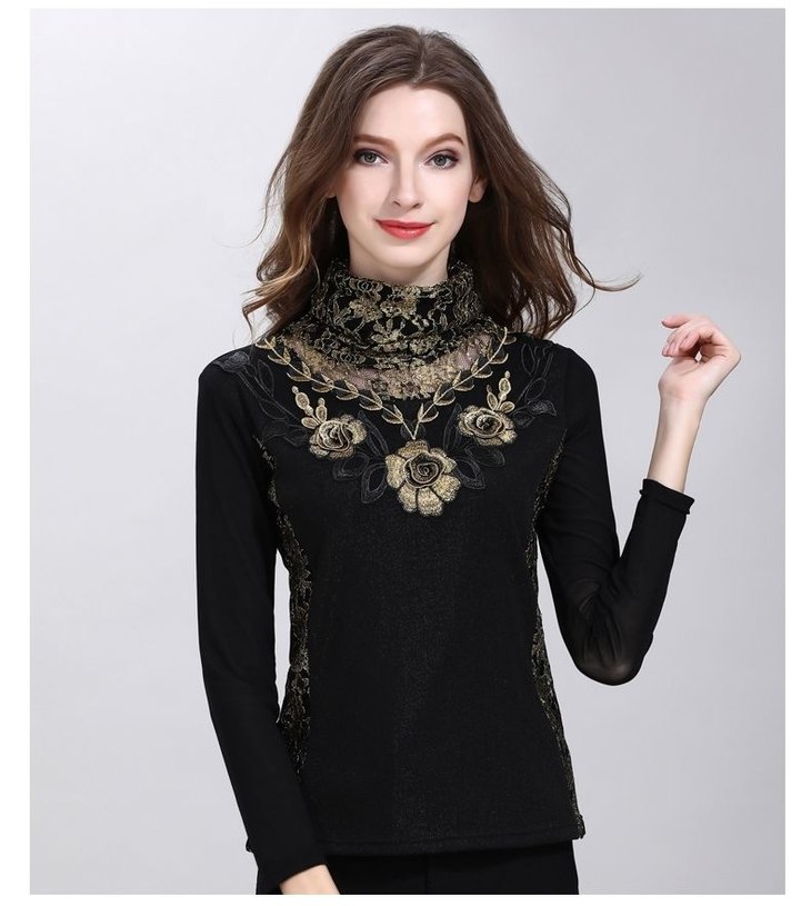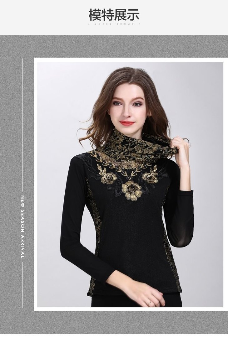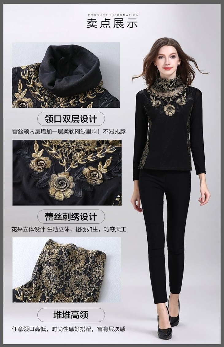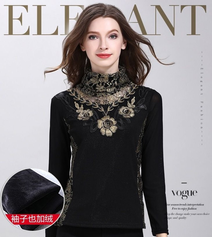 AL YZX5196 冬季单件高领花色通勤蕾丝衫