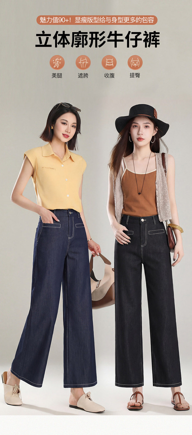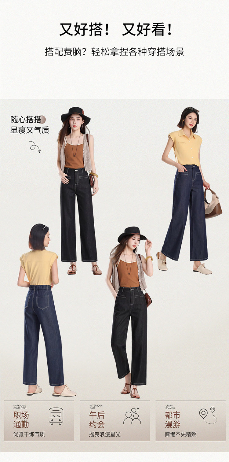 「自」全新升级【铂金会员146/天猫199/差价53】(10850)洛诗琳复古天丝牛仔裤2026春夏新款显瘦直筒休闲九分裤女