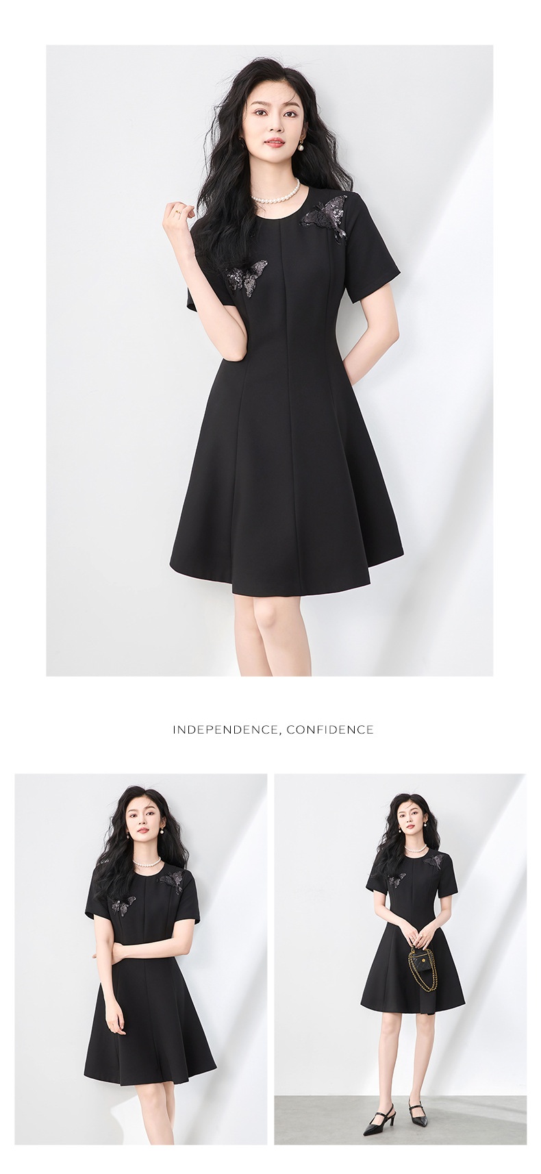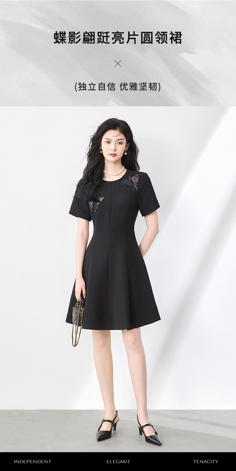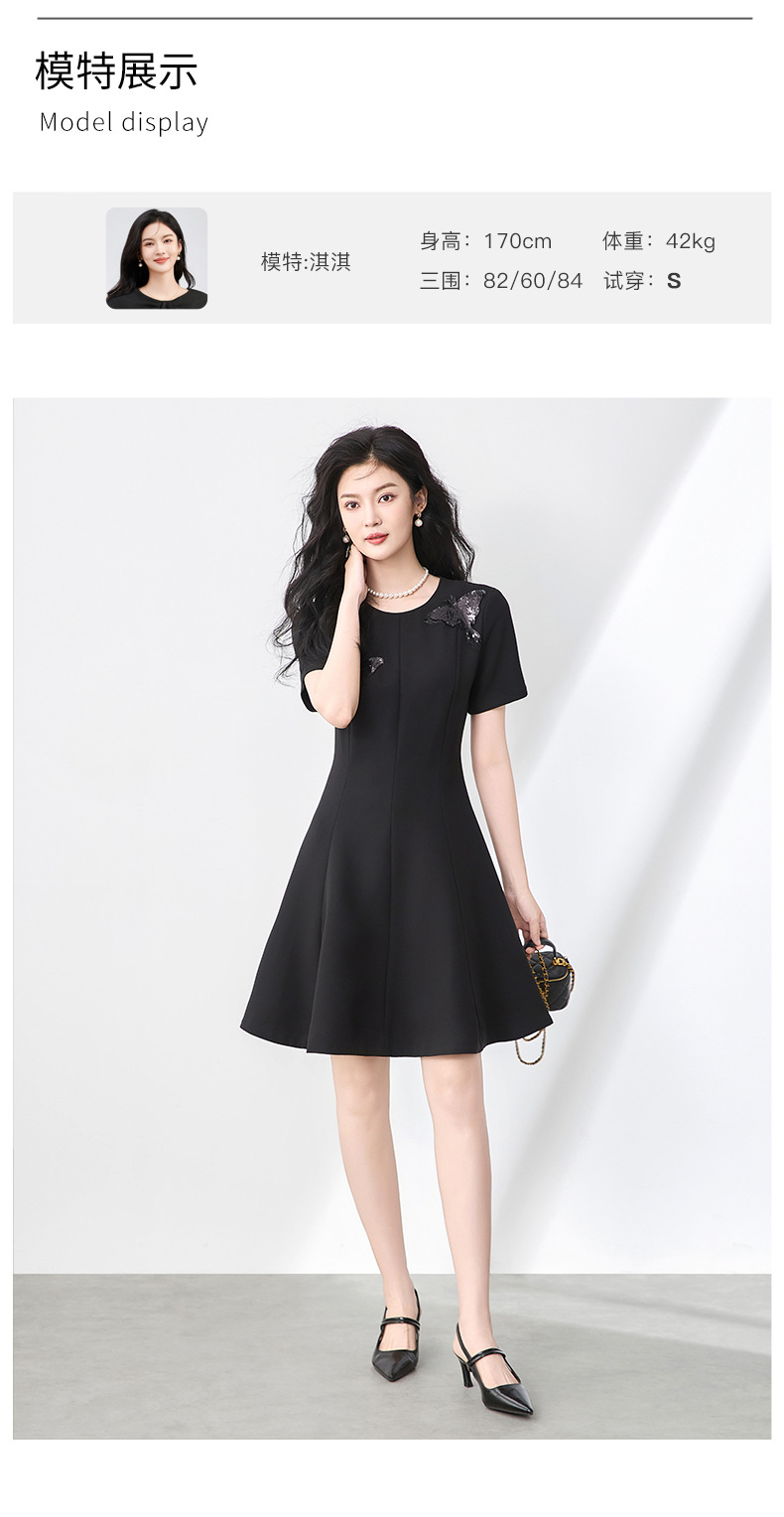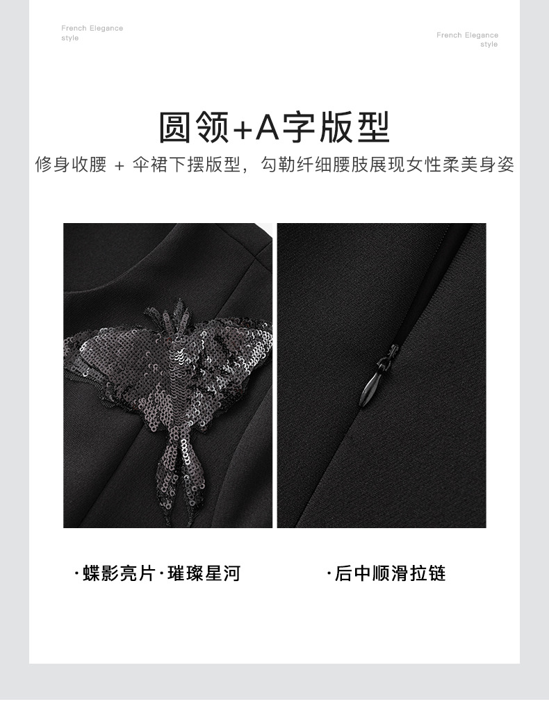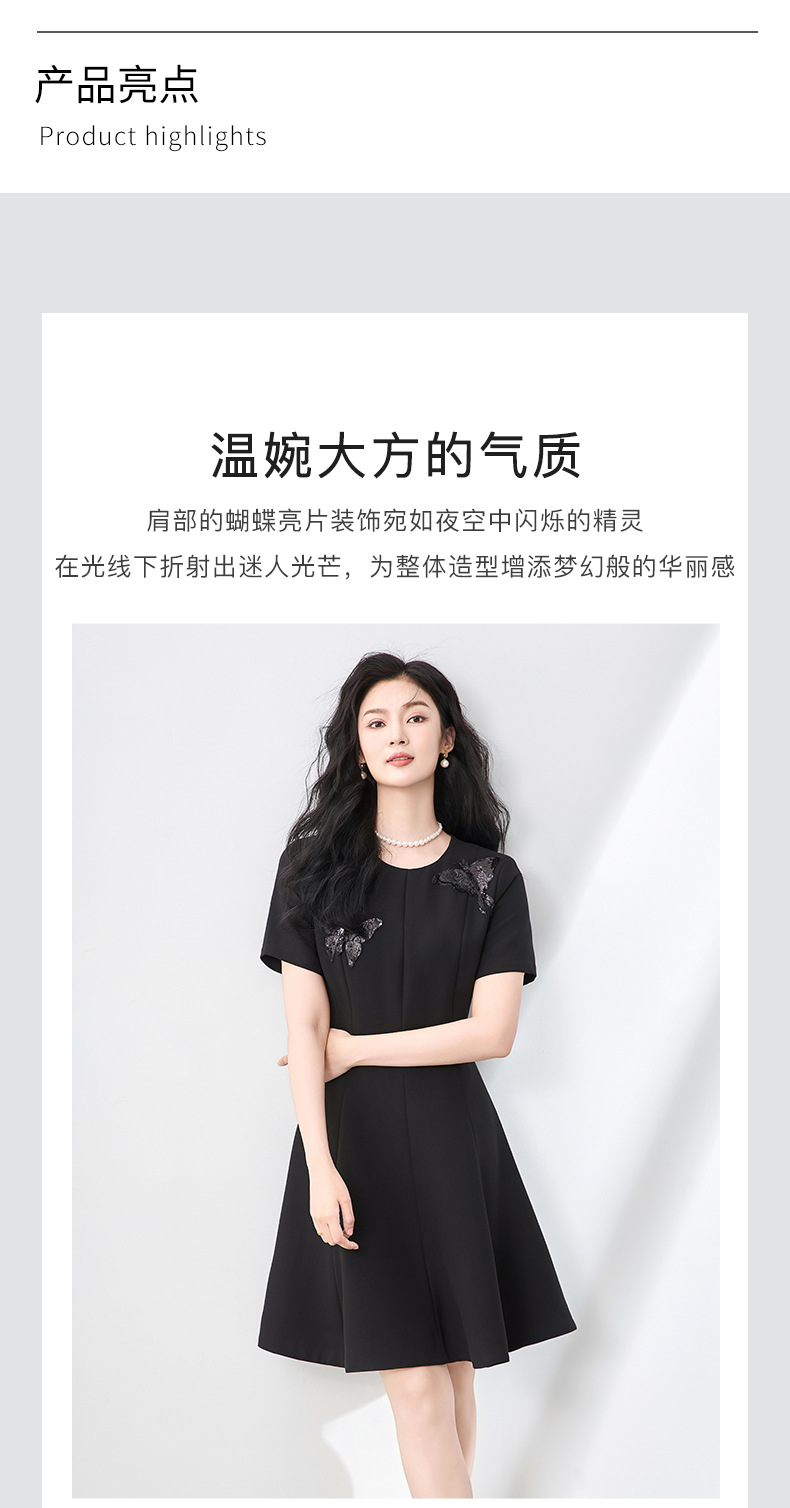 「高货wl」全新升级【铂金会员367/天猫489/差价122】(95937)洛诗琳重工亮片蝴蝶刺绣连衣裙2025夏季气质收腰醋酸裙女