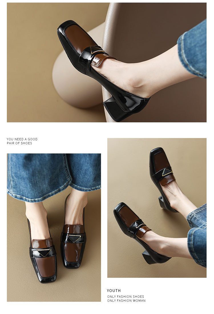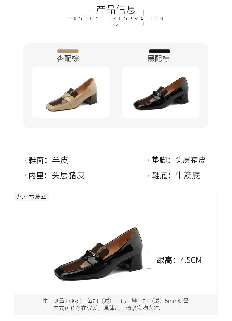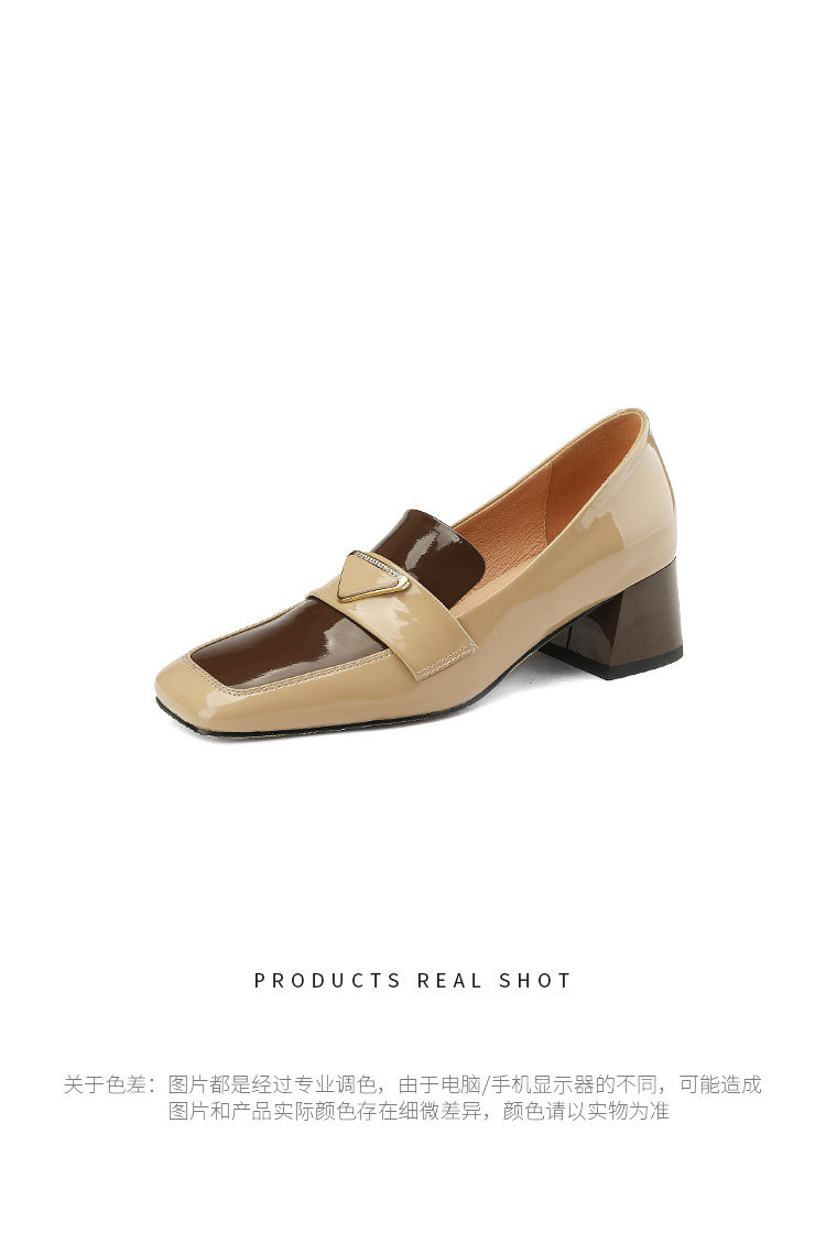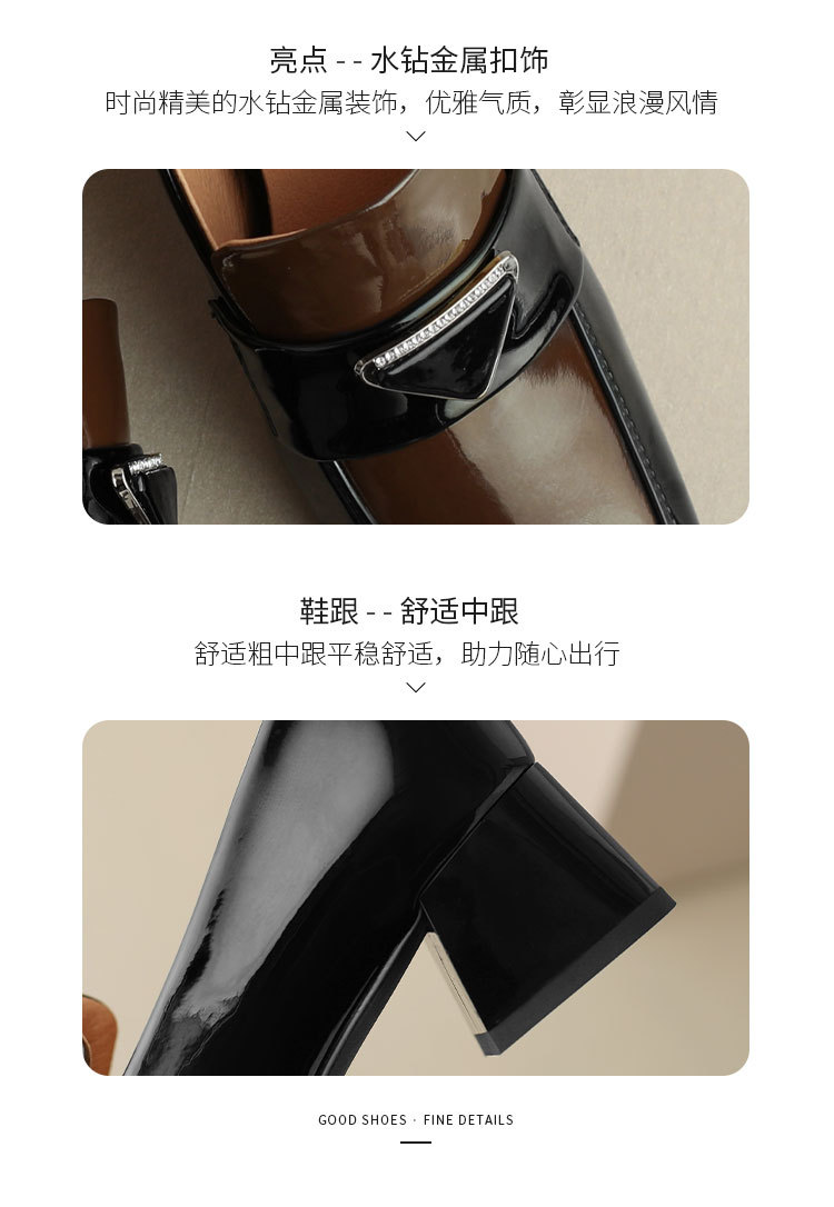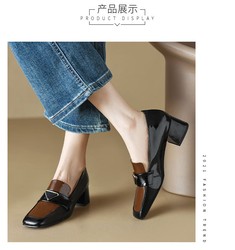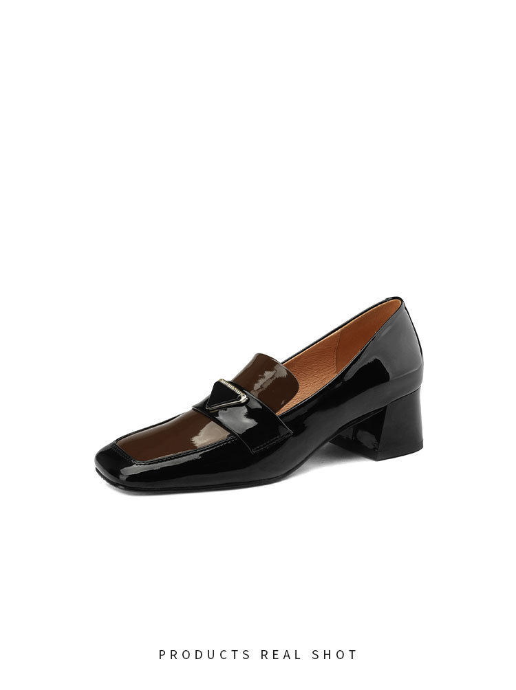 法式复古,粗跟玛丽珍职业拼色女春秋高跟鞋方头粗跟漆皮单鞋HCY-3307