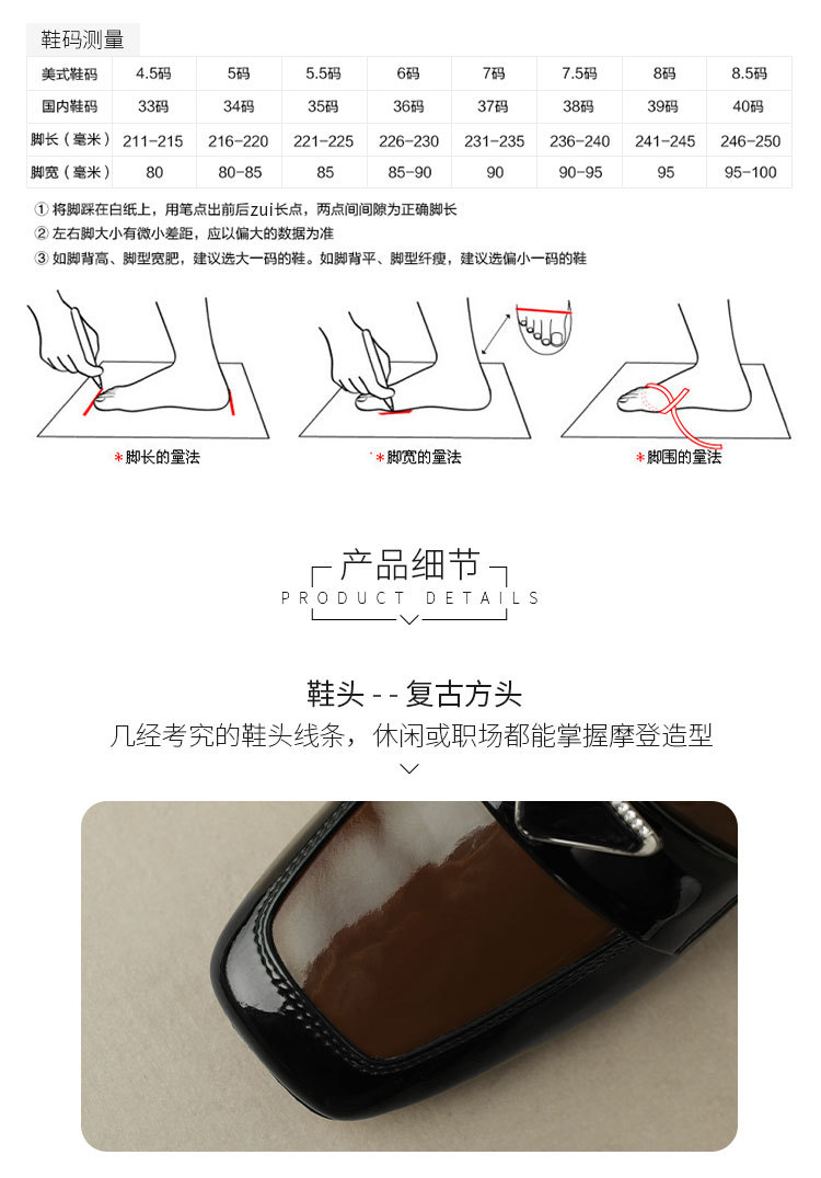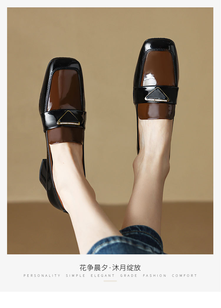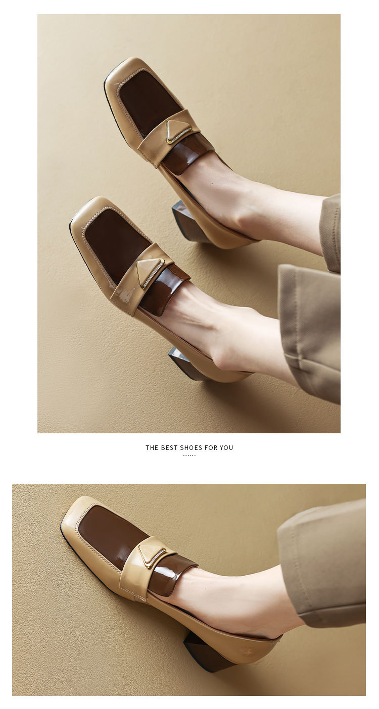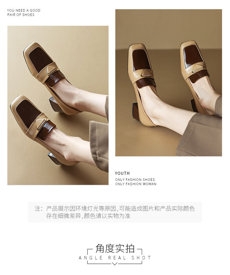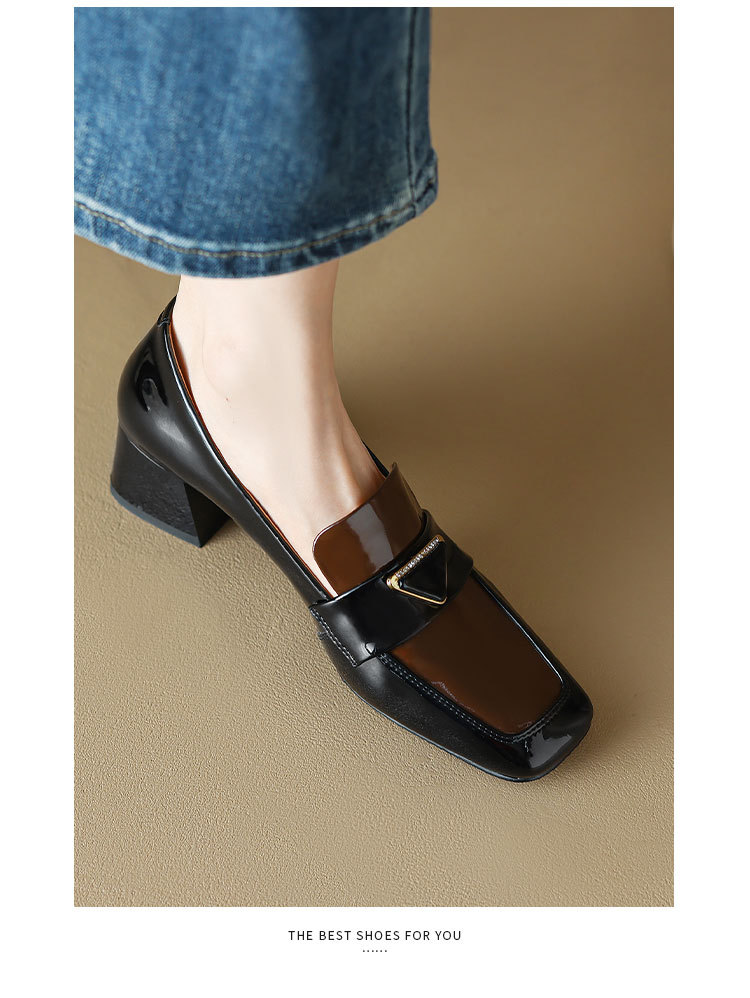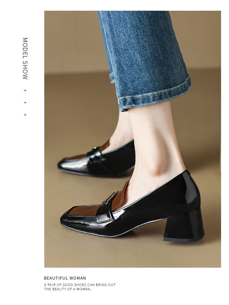 法式复古,粗跟玛丽珍职业拼色女春秋高跟鞋方头粗跟漆皮单鞋HCY-3307